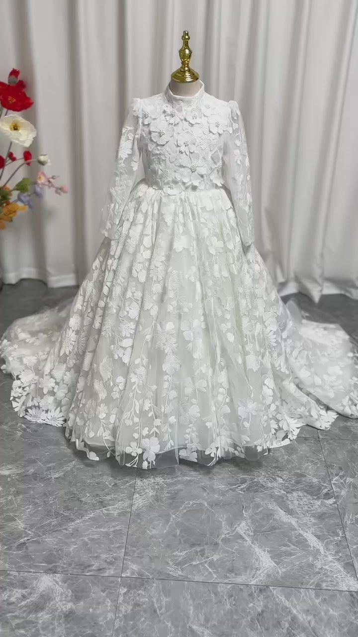 Luxury White Girl Dress 3D Flowers Princess Dubai Kids J293