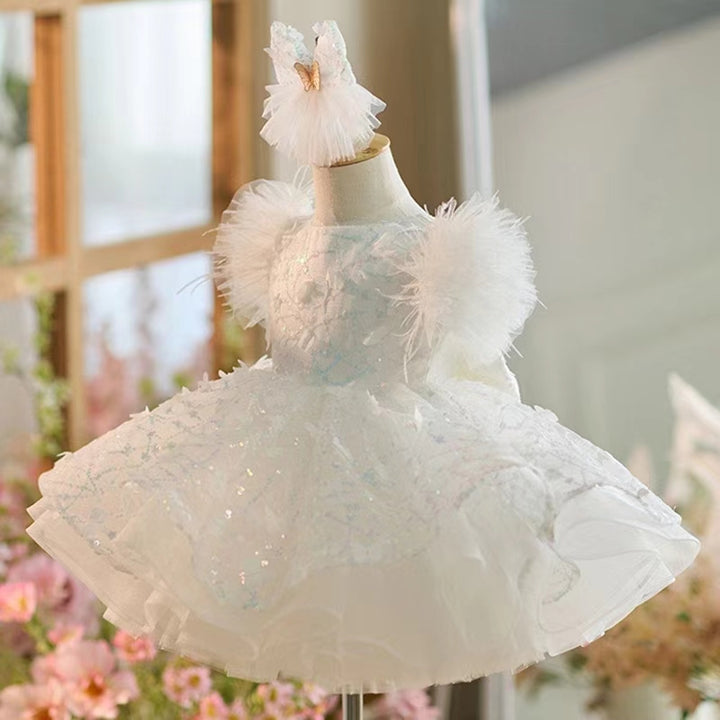 Experience the ultimate in elegance and style with our DreamyVow Sparkly White Girl Dress. The beautiful pink knee length design exudes a touch of Arabic charm, making it perfect for any occasion. With its sparkling detail and flawless fit, your little girl will feel like a princess in this stunning dress. Order now and make her dreams come true.