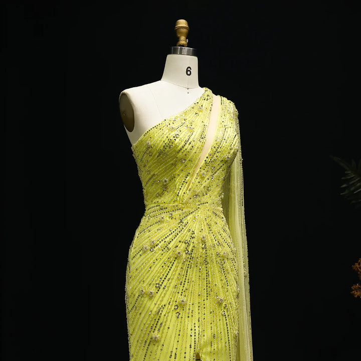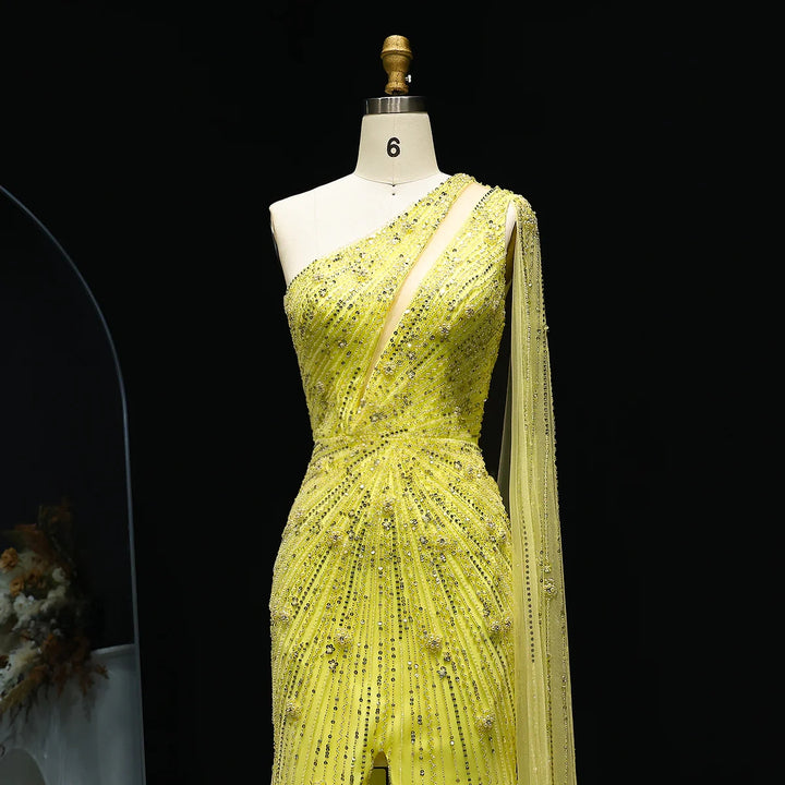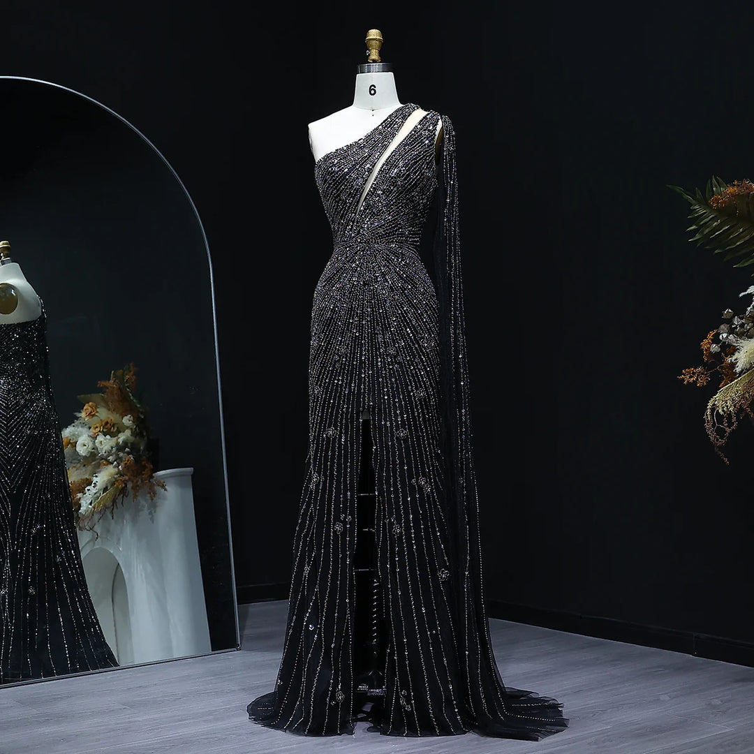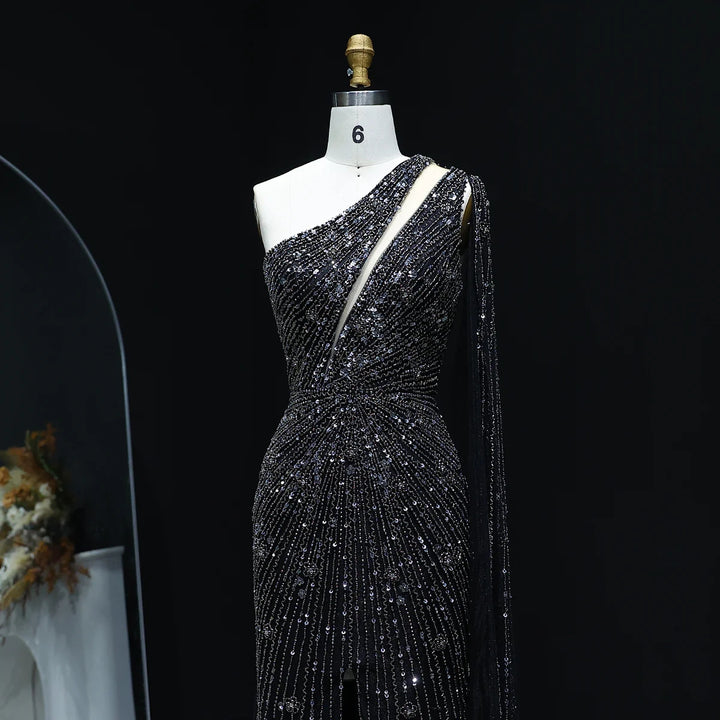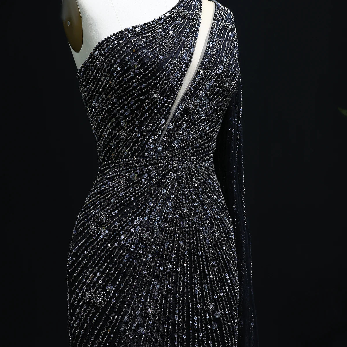 Elegant Evening Dress with One Shoulder and Beading SS317