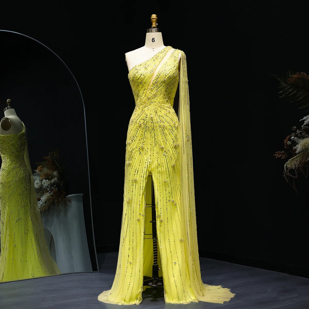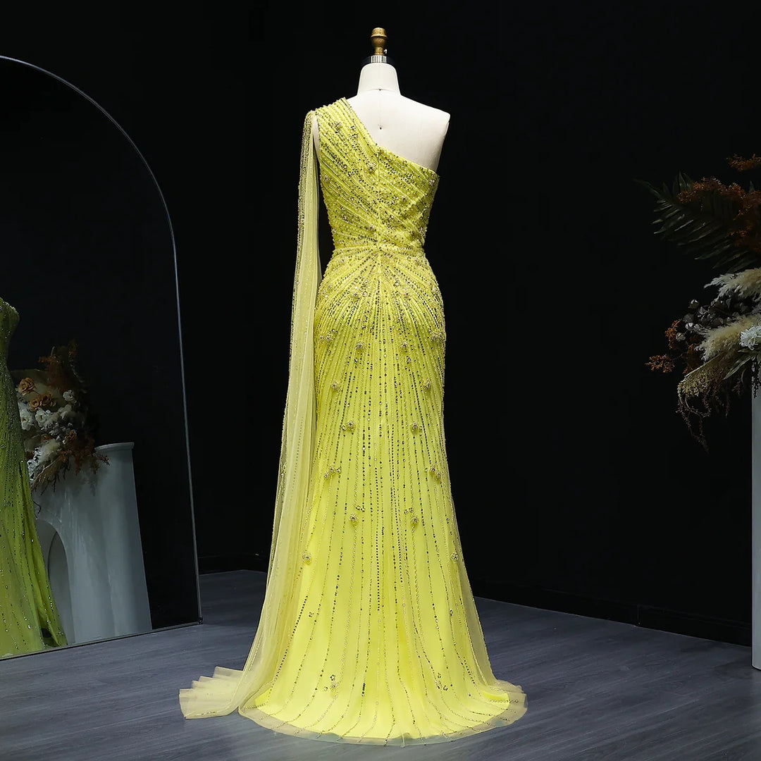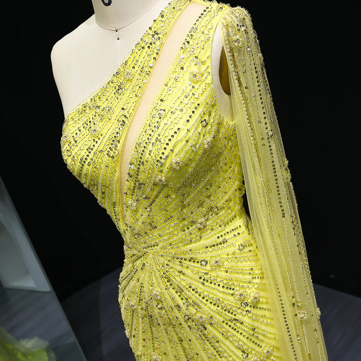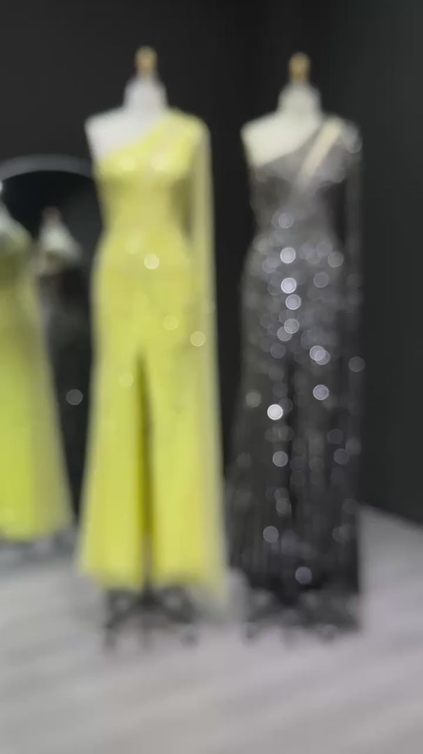 Elegant Evening Dress with One Shoulder and Beading SS317