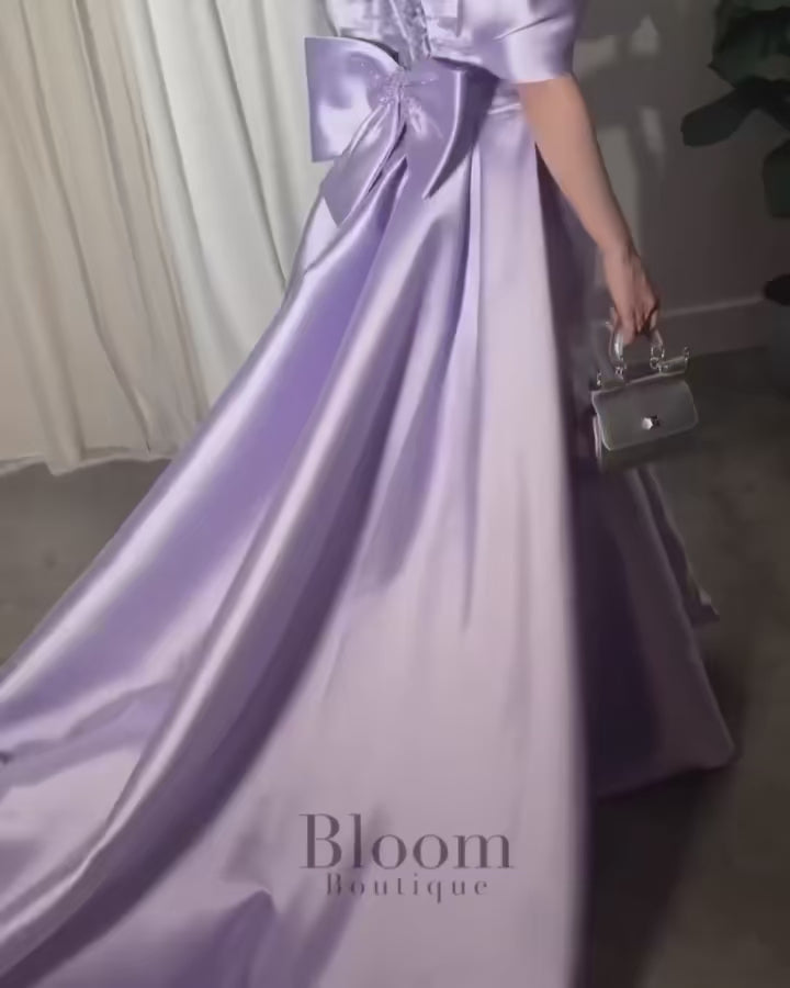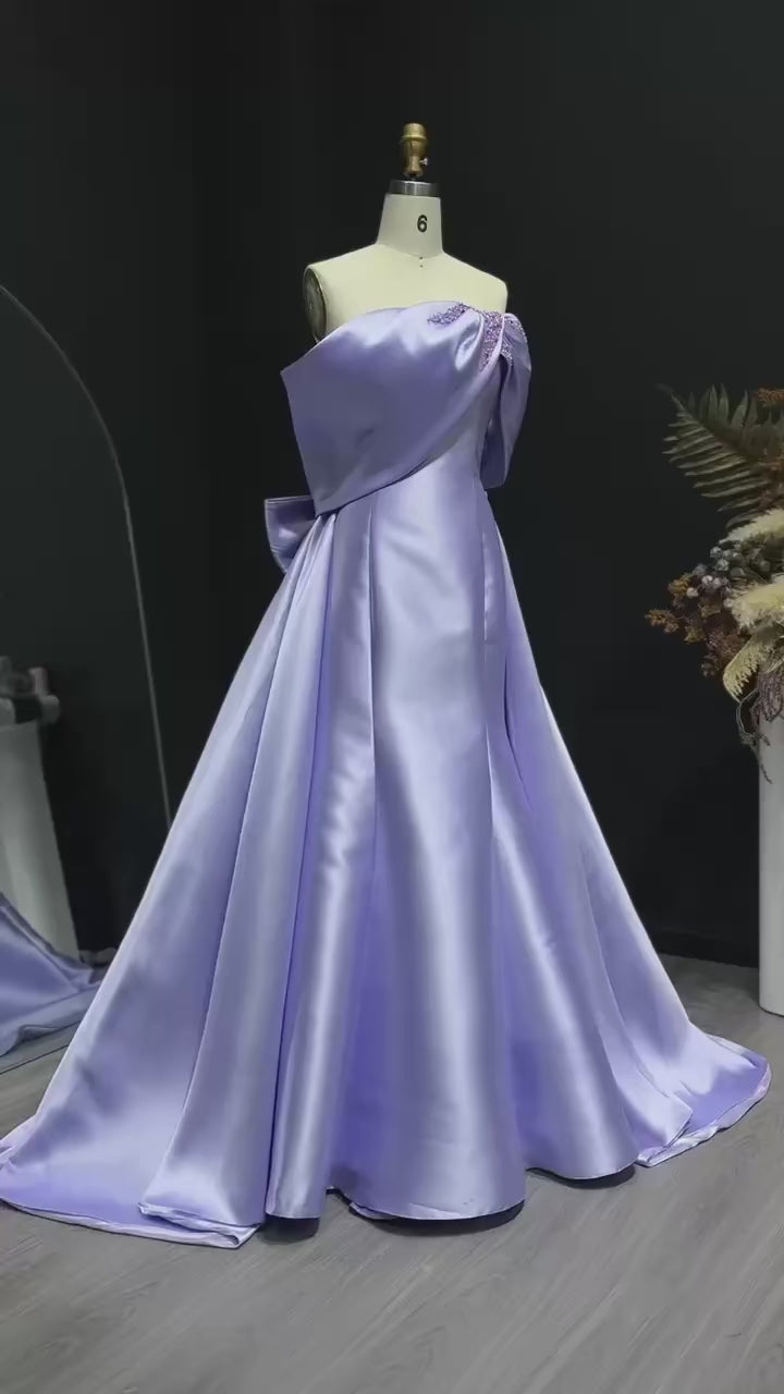 Elegant Off Shoulder Lilac Evening Dress with Overskirt SS400