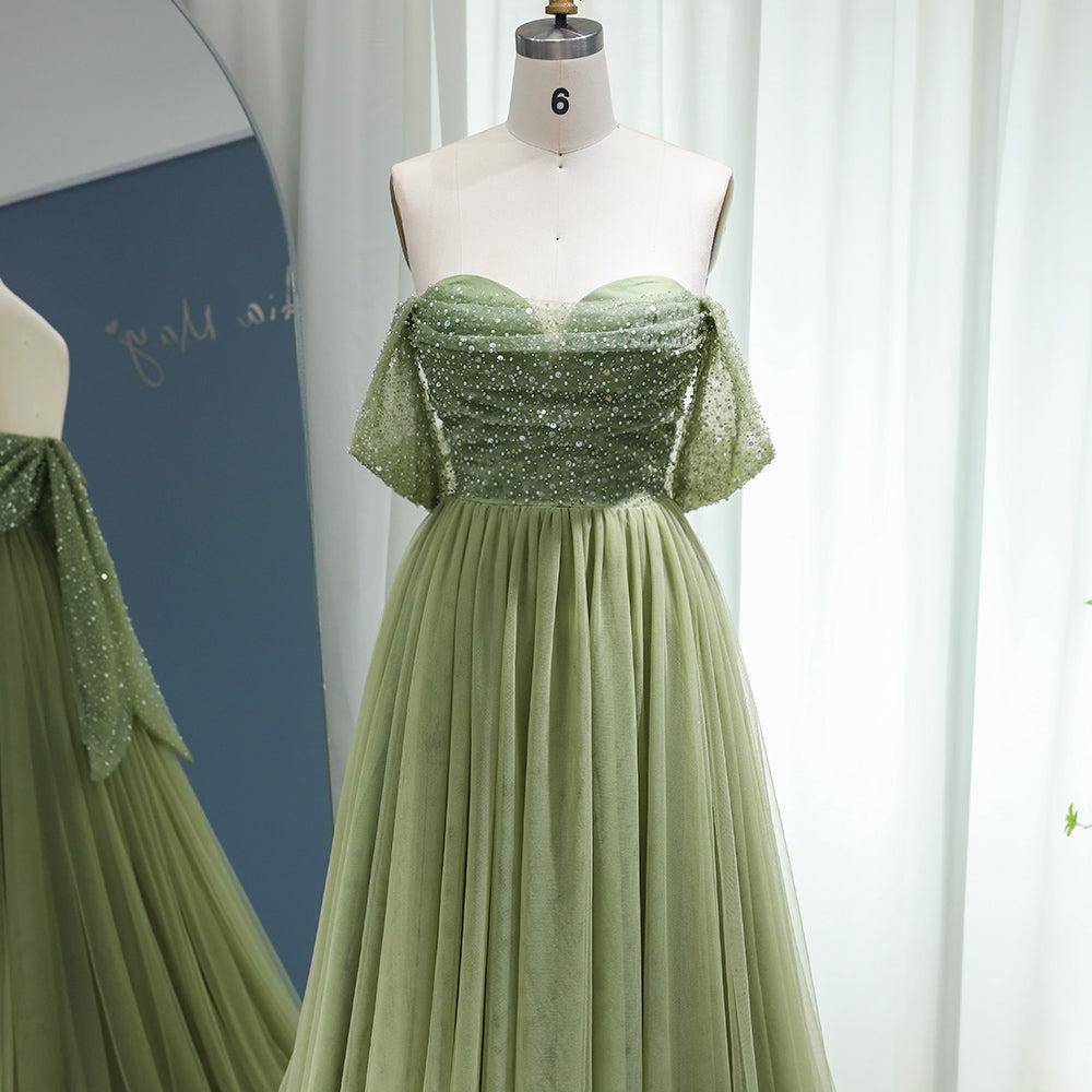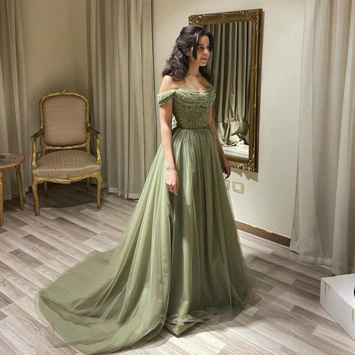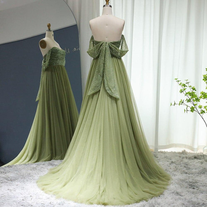 Dreamy Vow Elegant Off Shoulder Sage Evening Dresses for Women Wedding Guest Luxury Beaded Arabic Long Formal Party Gown SS314-DreamyVow