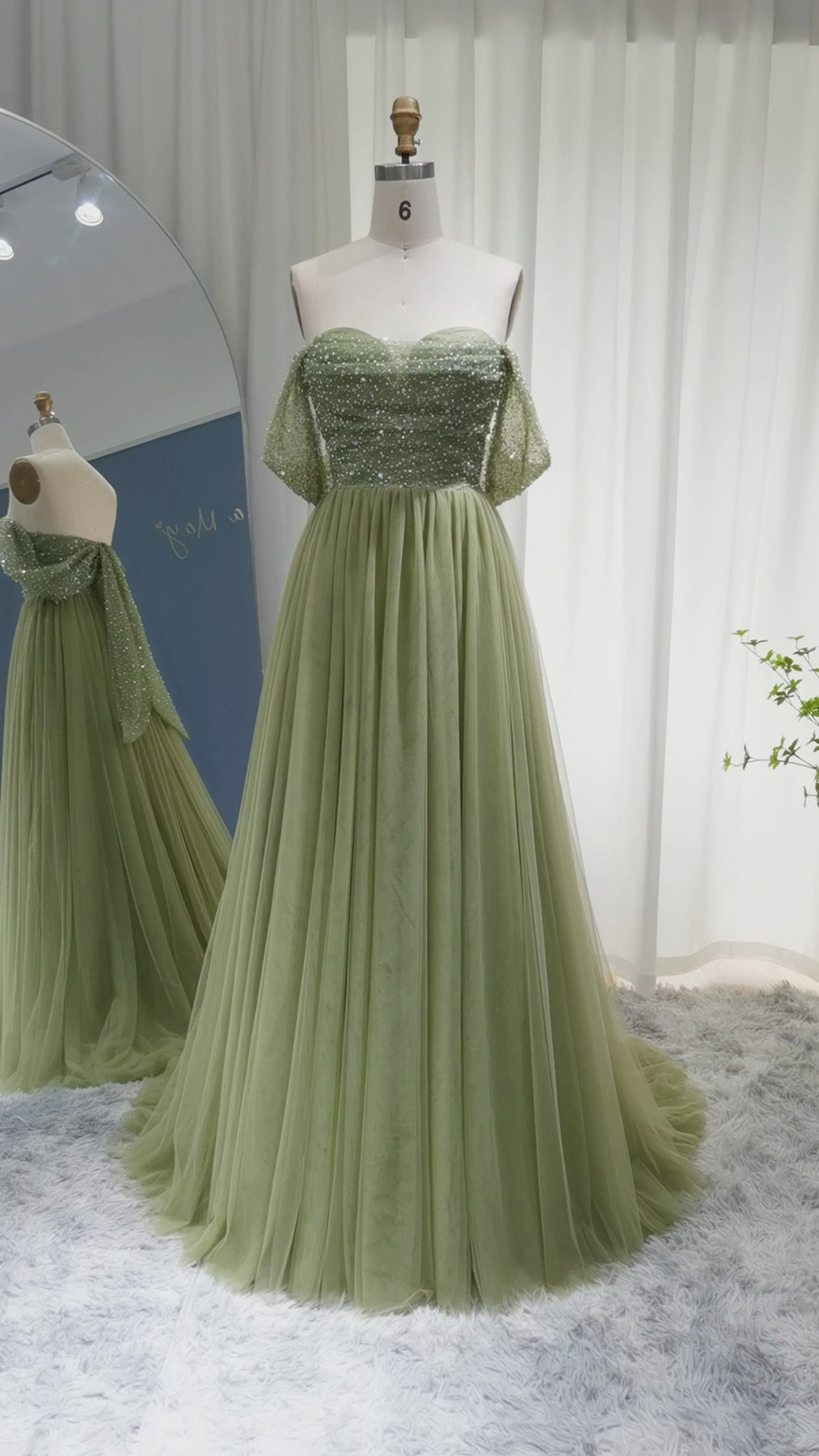 Elegant Off Shoulder Sage Evening Dresses for Women Wedding SS314
