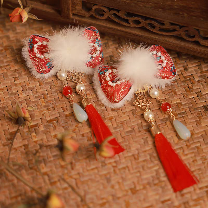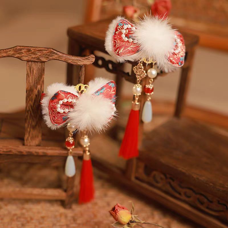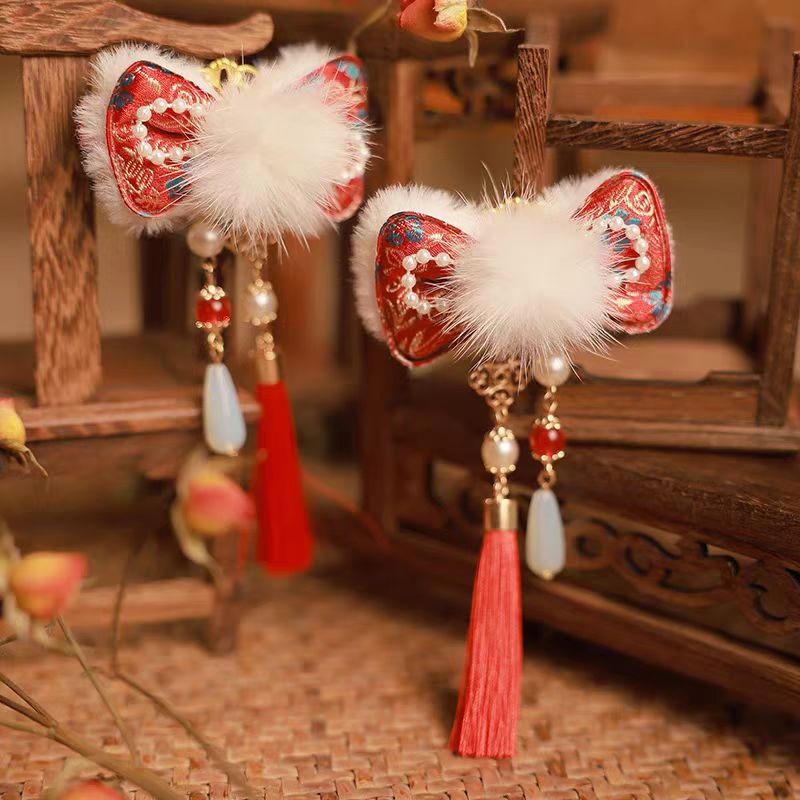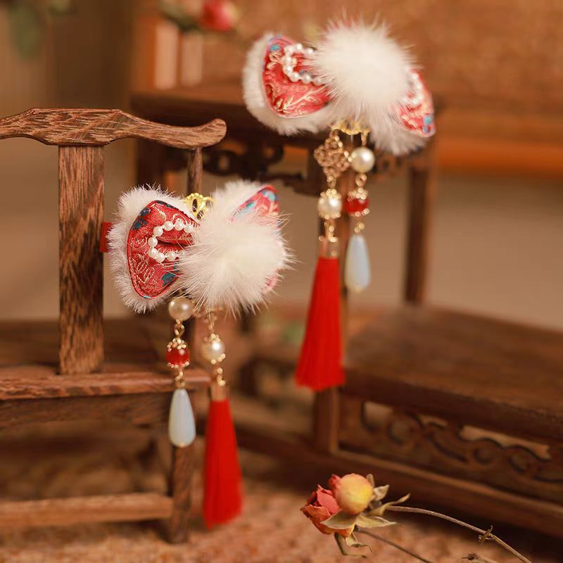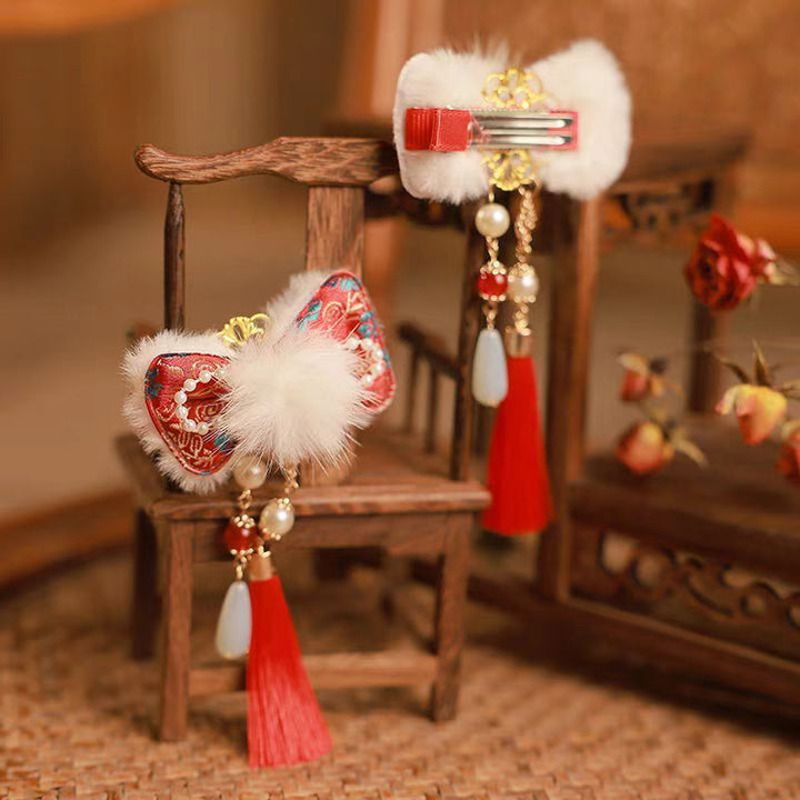 Dreamy Girl's Red Headwear New Chinese Style Children's Hair Clip one-year-old Hair Accessories W021