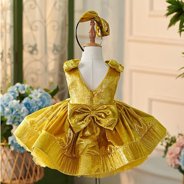 Gold Knee Length Baby 1st Birthday Girl Dress J306