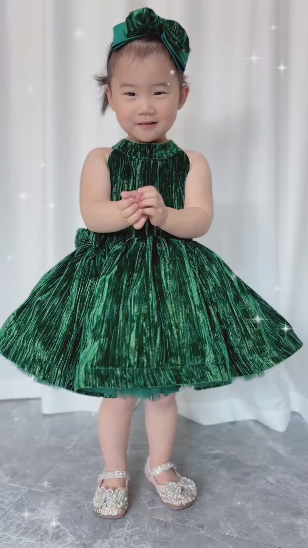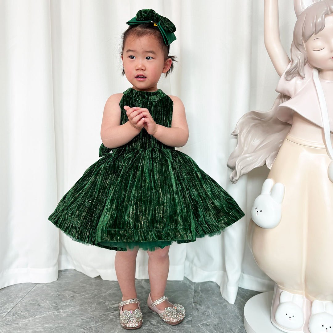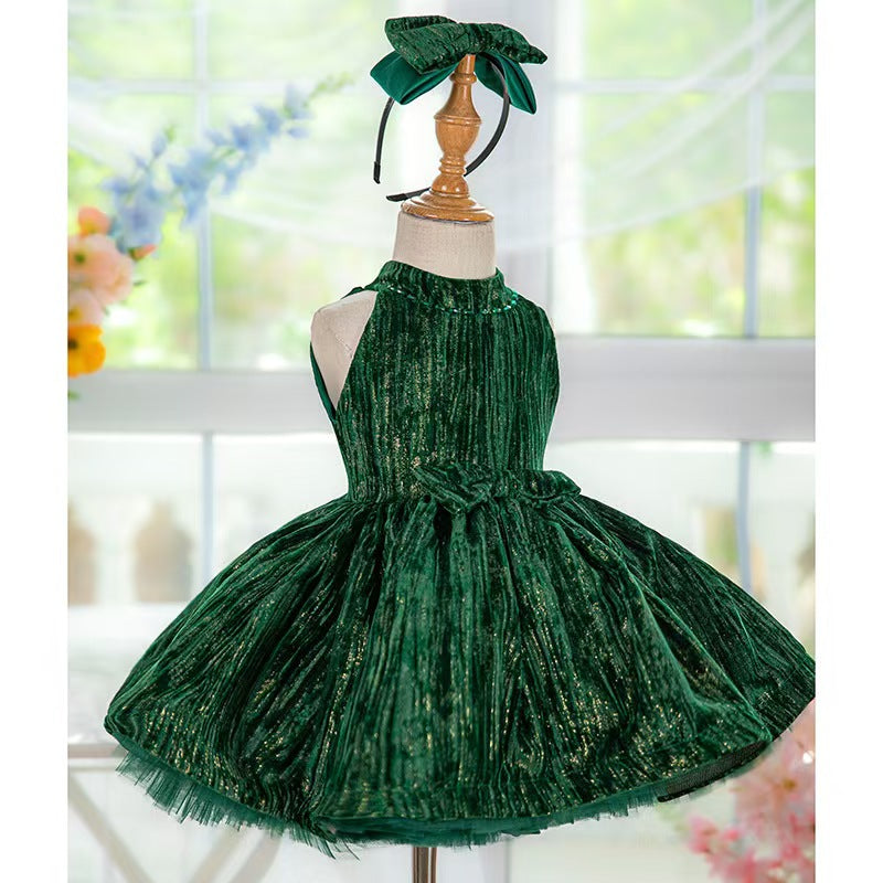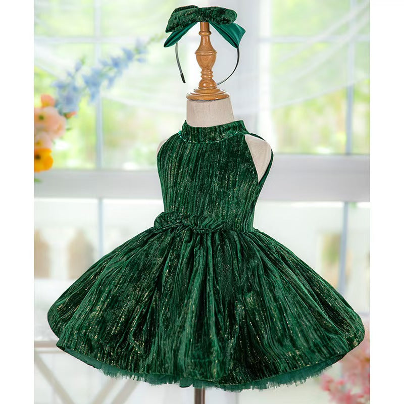 Green Knee Length Baby 1st Birthday Girl Dress J310