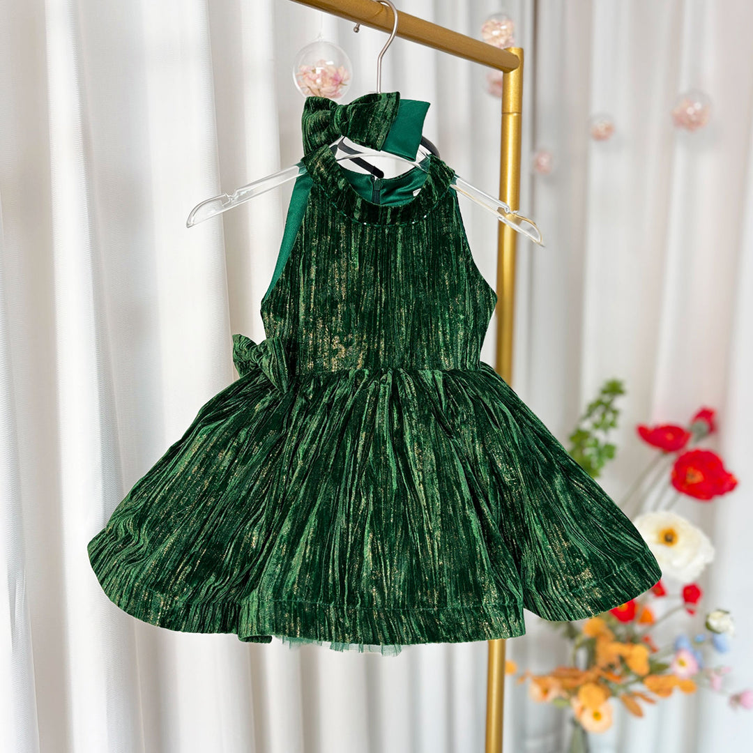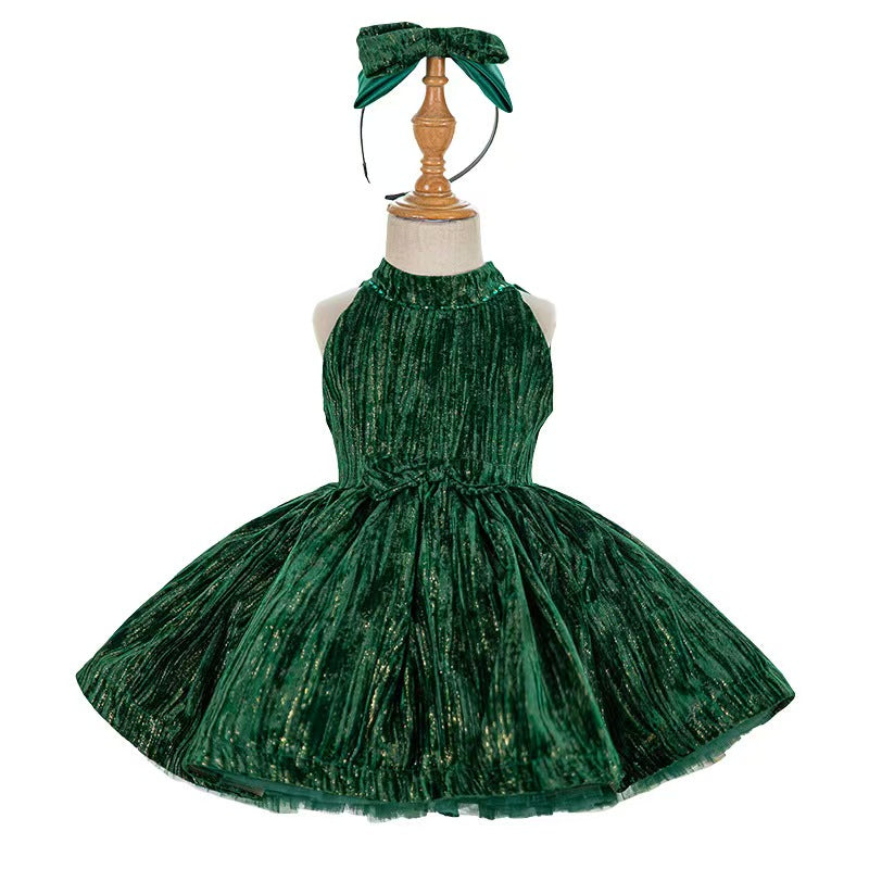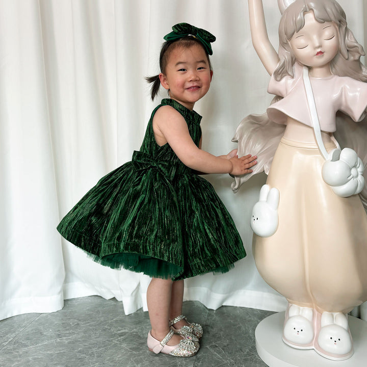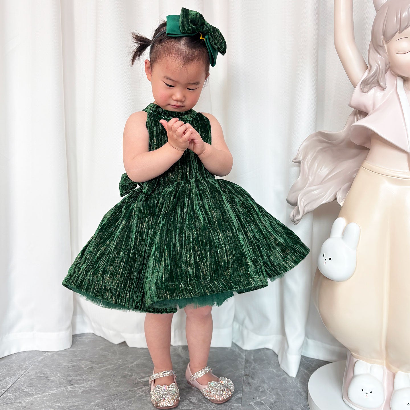 Green Knee Length Baby 1st Birthday Girl Dress J310