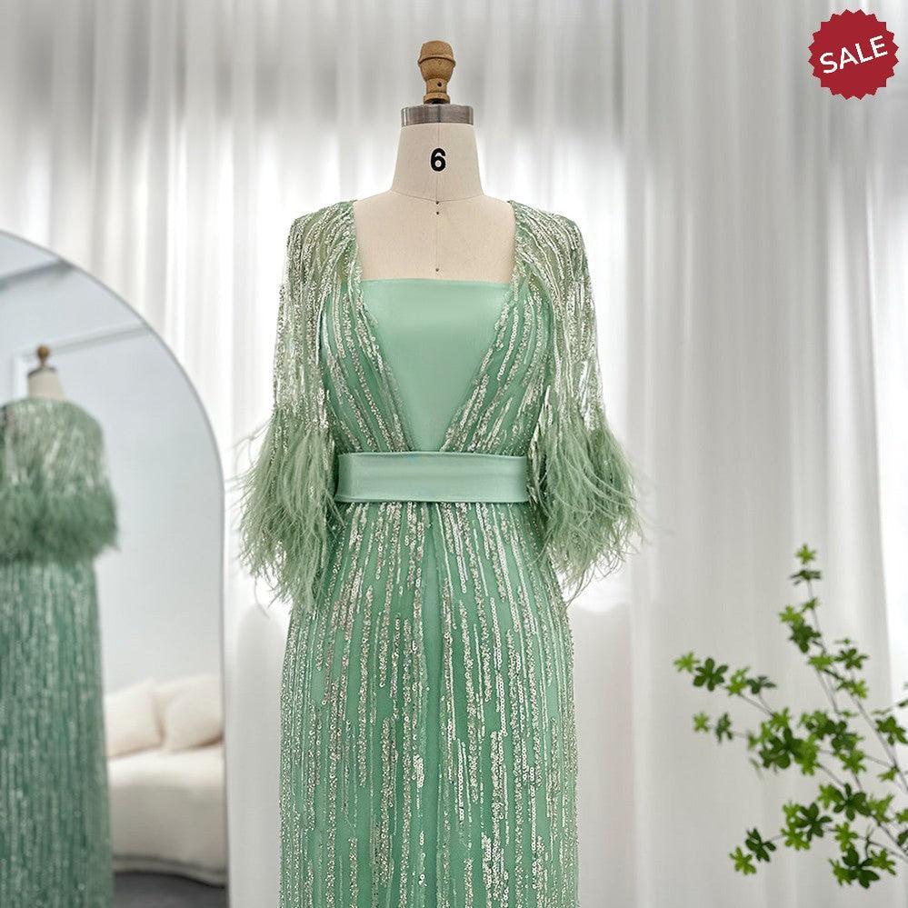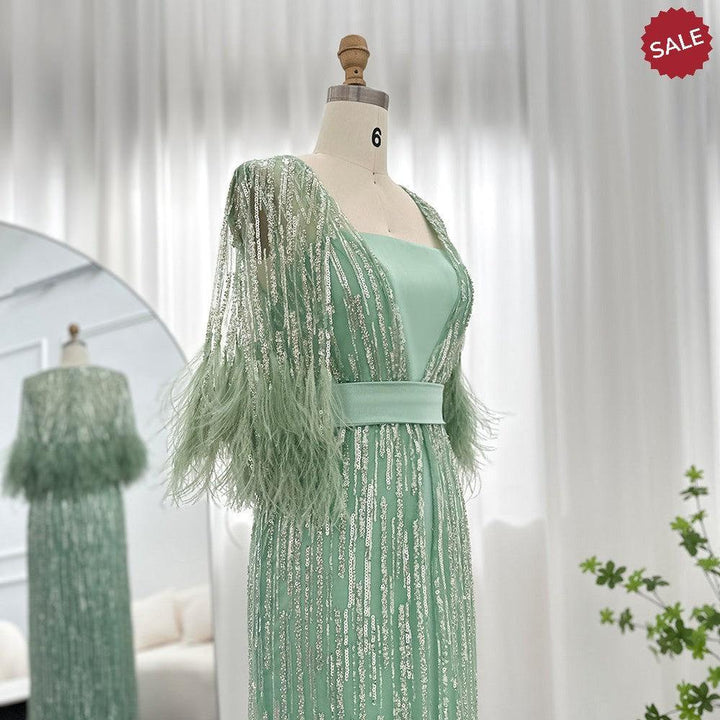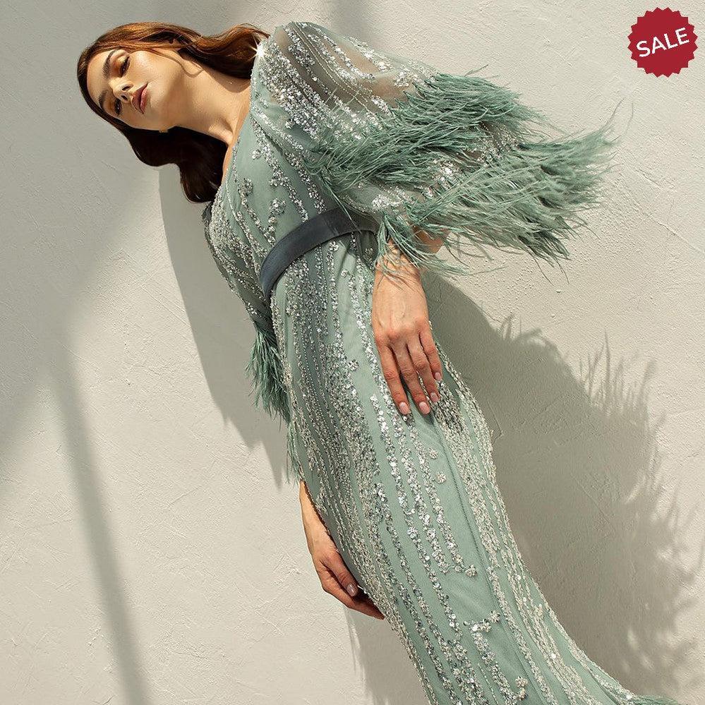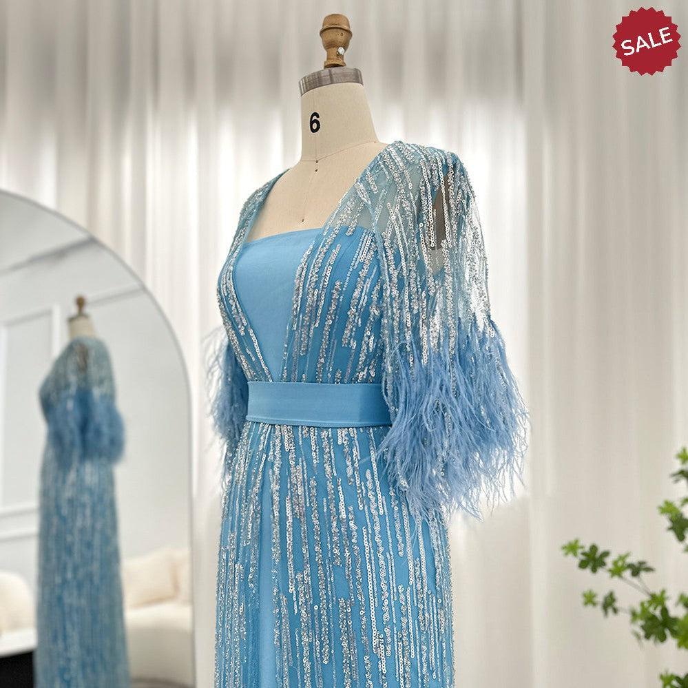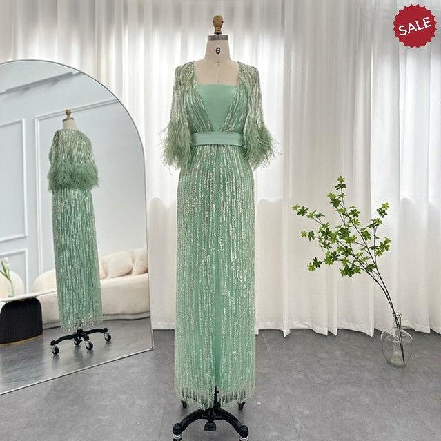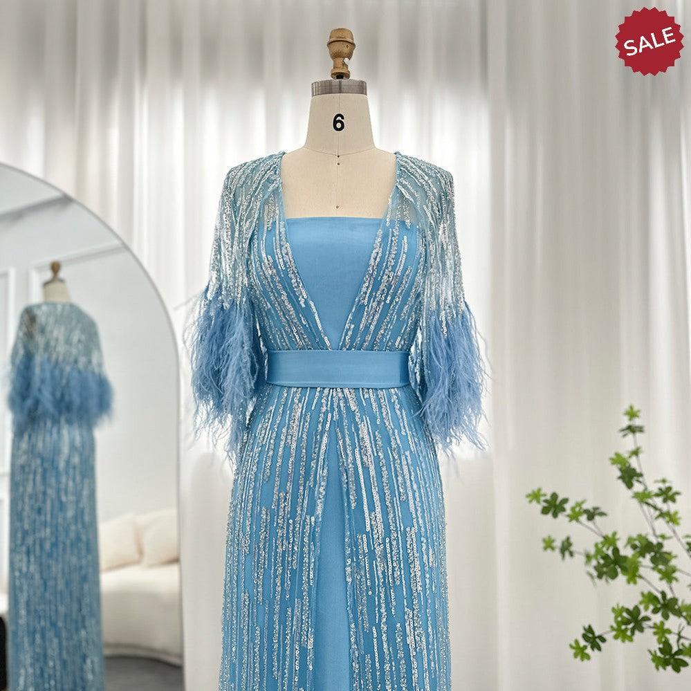 Elevate your evening with the Dreamy Vow Luxury Dubai Feathers Evening Dress. This light yellow gown features delicate feathers and a stunning Arabic purple design, perfect for weddings and formal occasions. The epitome of luxury, this dress will make you feel elegant and glamorous all night long.