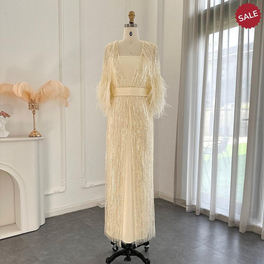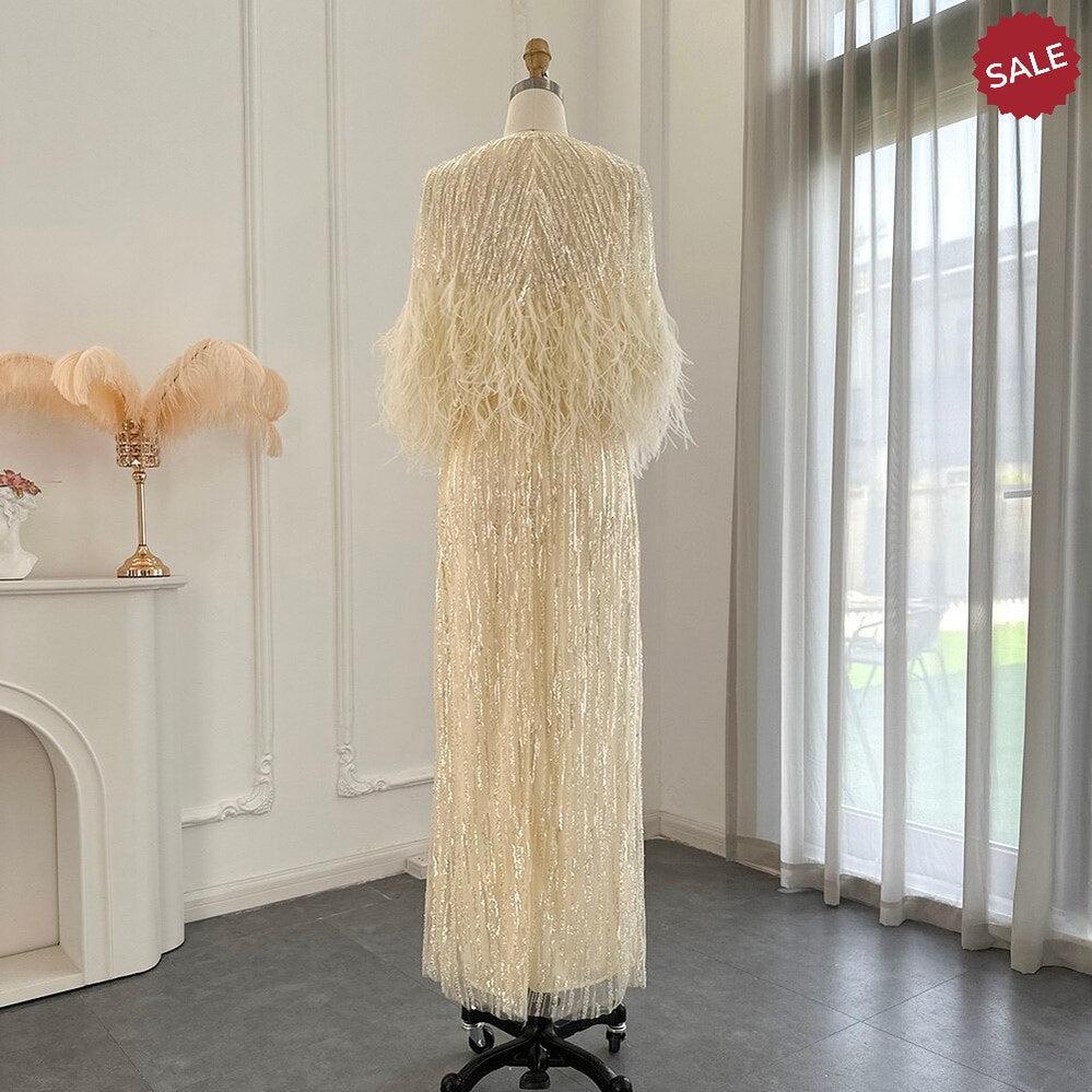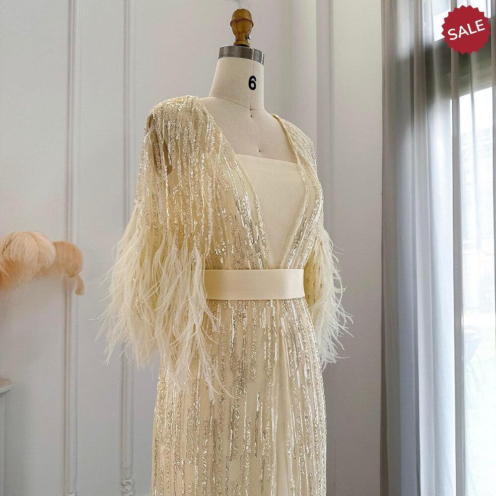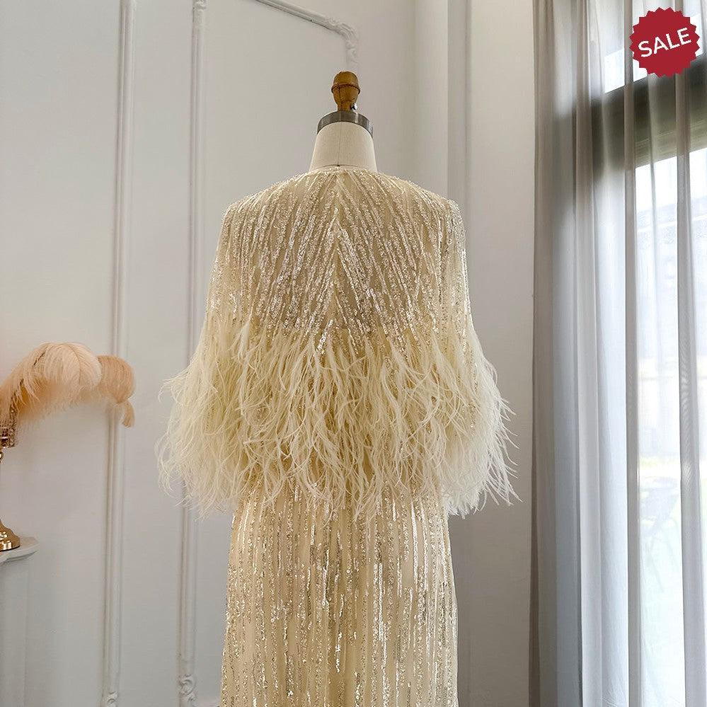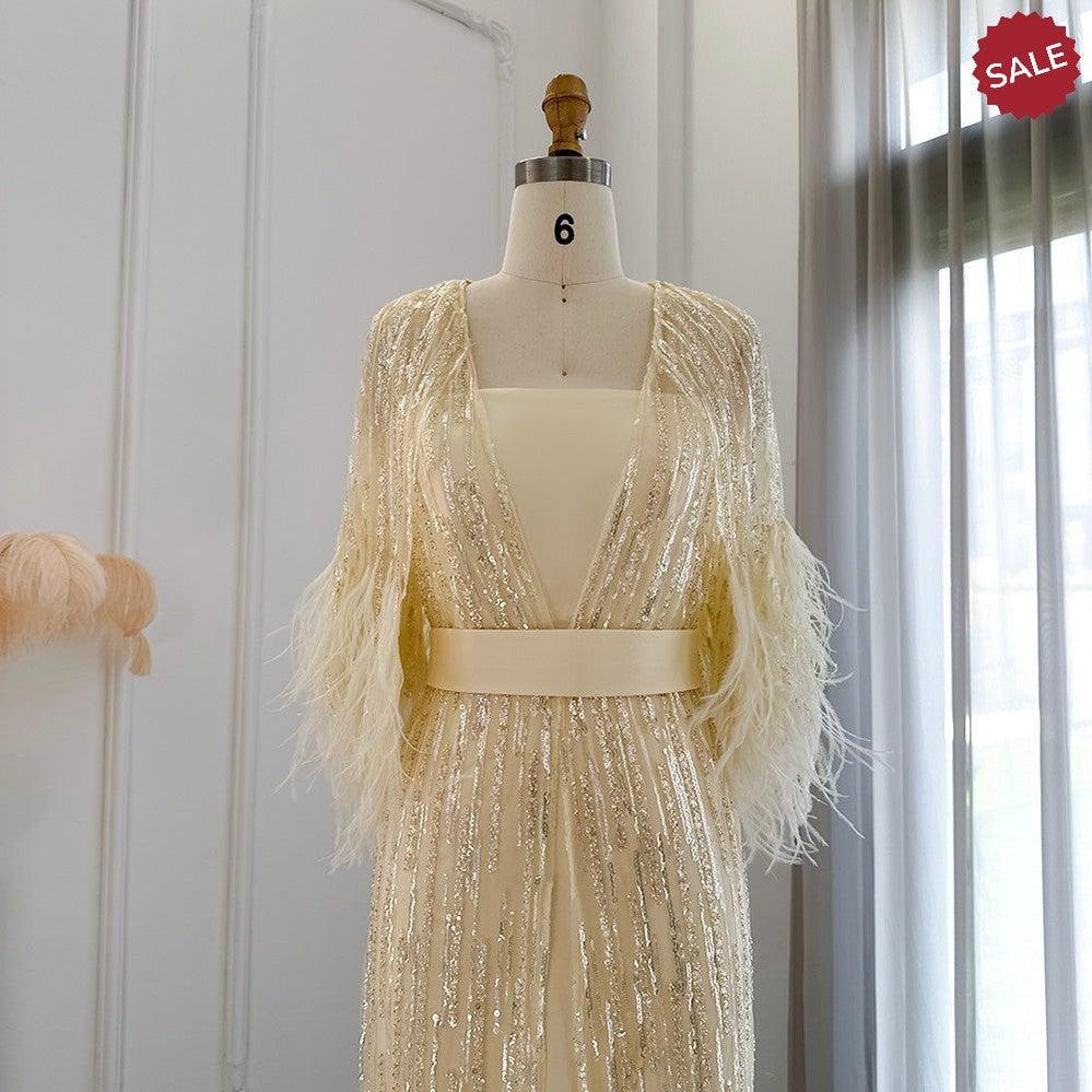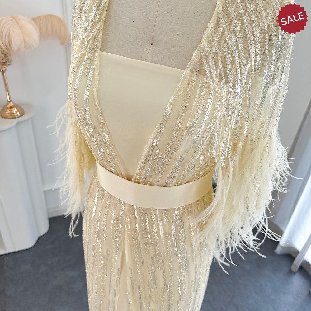 Light Yellow Luxury Feathers Evening Dresses for Wedding Party SS430