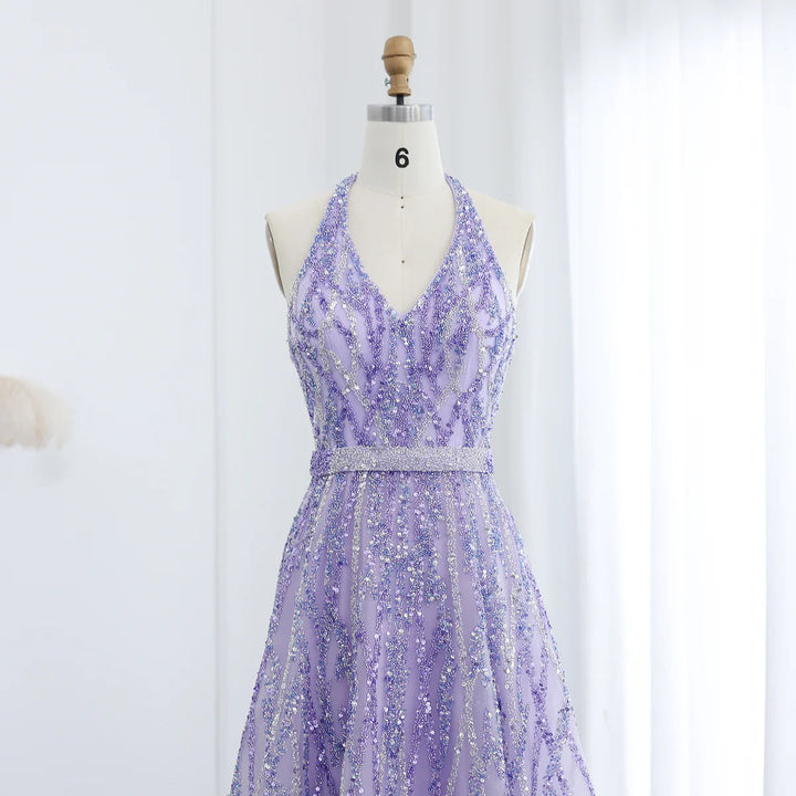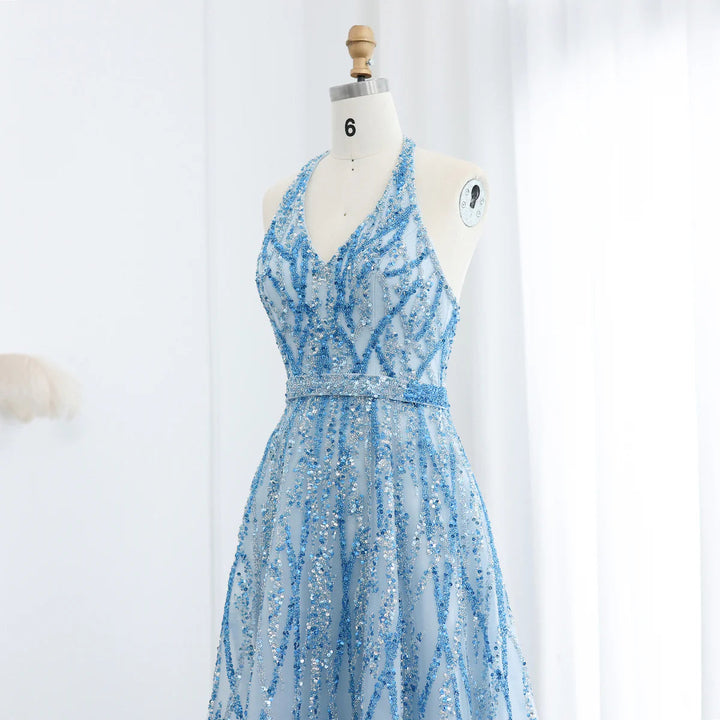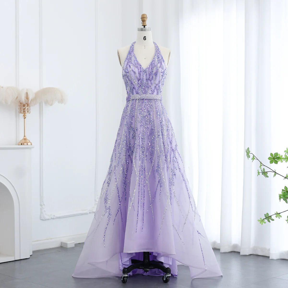 Experience elegance with the Luxury Beaded Lemon Green Halter High Low Evening Dress SS472. Impeccably designed and adorned with delicate beads, this dress is the perfect choice for any formal occasion. Elevate your style and make a statement in this stunning dress.