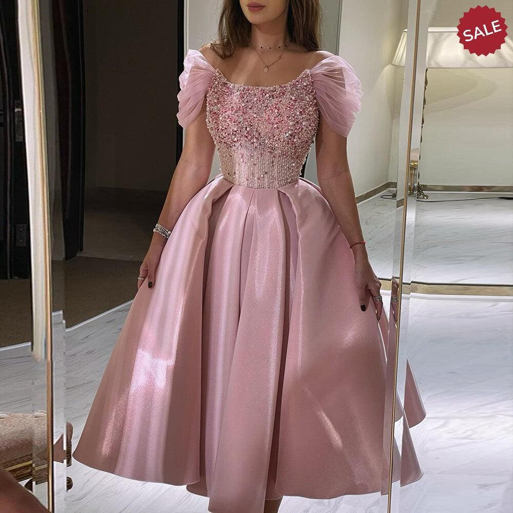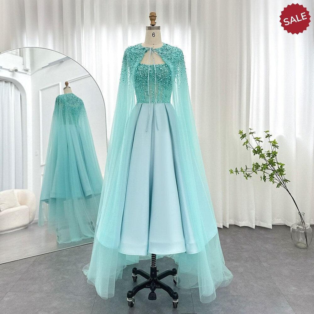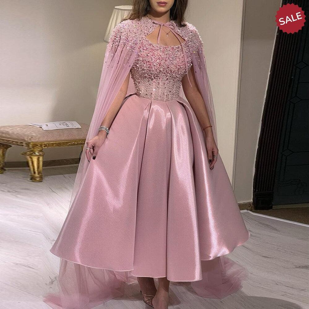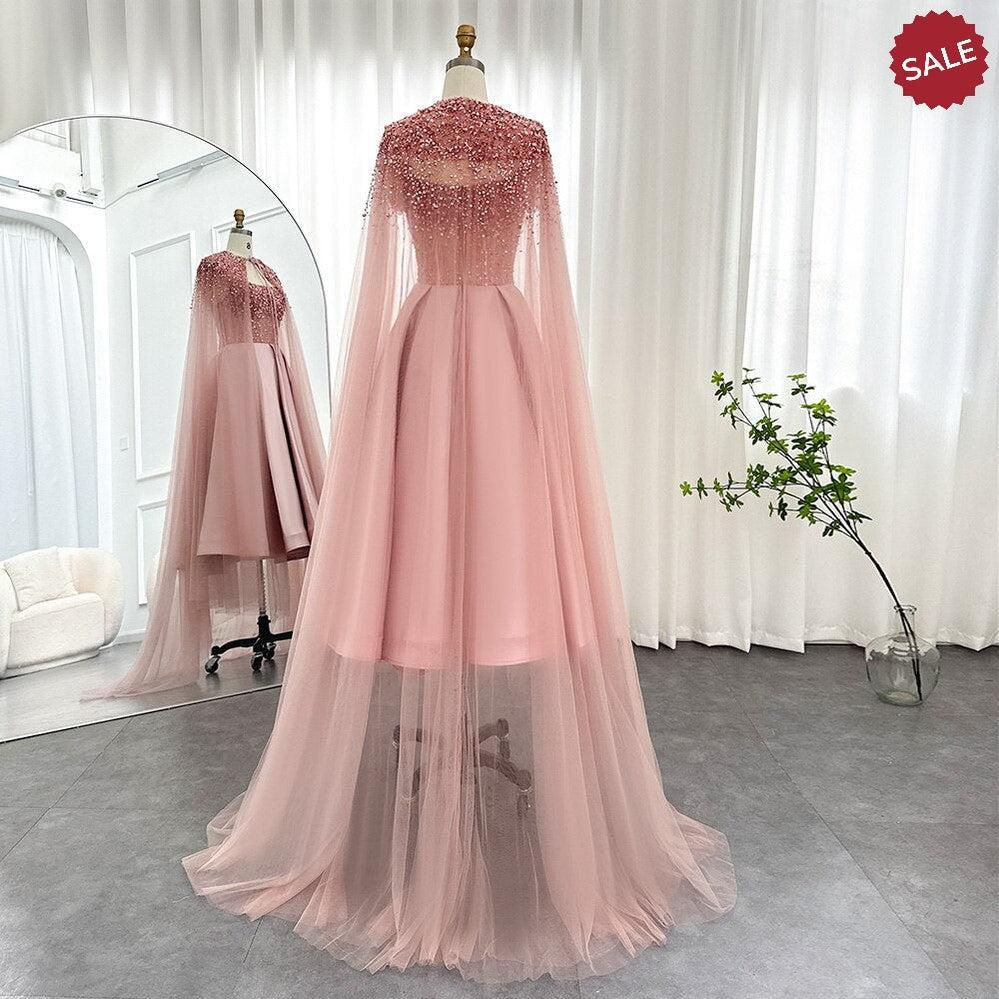 Dreamy Vow Luxury Dubai Blush Pink Arabic Evening Dress with Cape Ankle Length Short Midi Women Wedding Party Dress SS392-DreamyVow