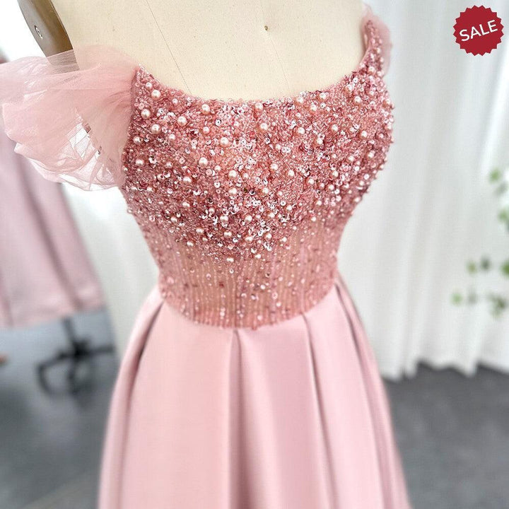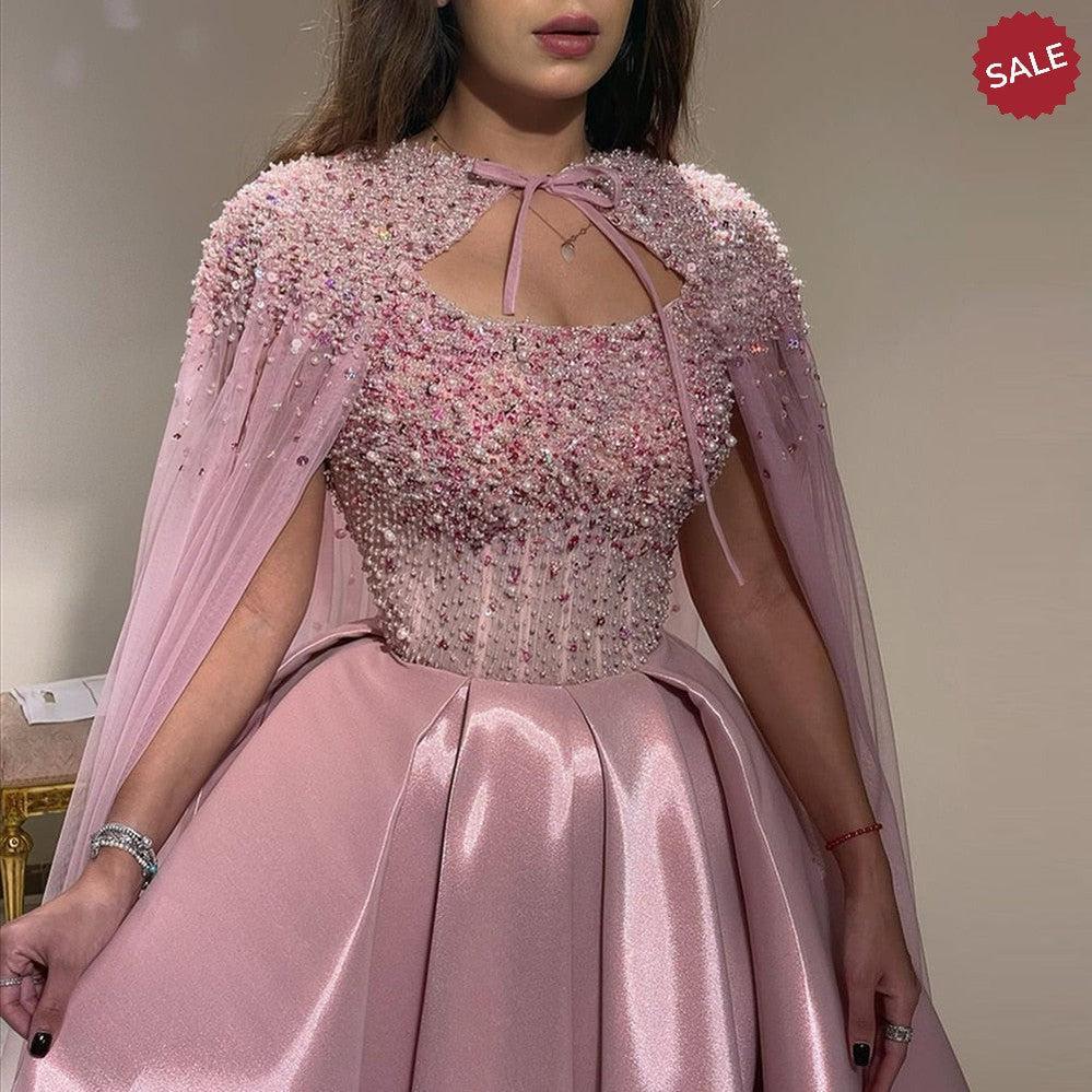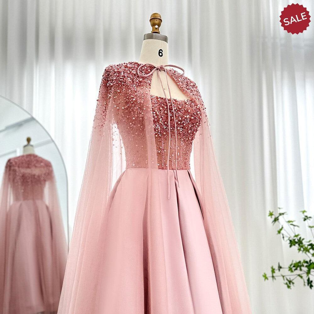 Luxury Blush Pink Arabic Evening Dress with Cape SS392