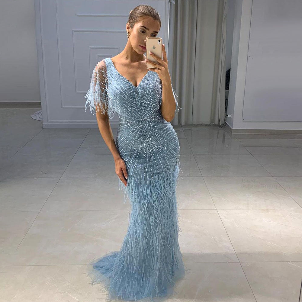 Dubai Feathers Khaki Mermaid Evening Dresses SS210