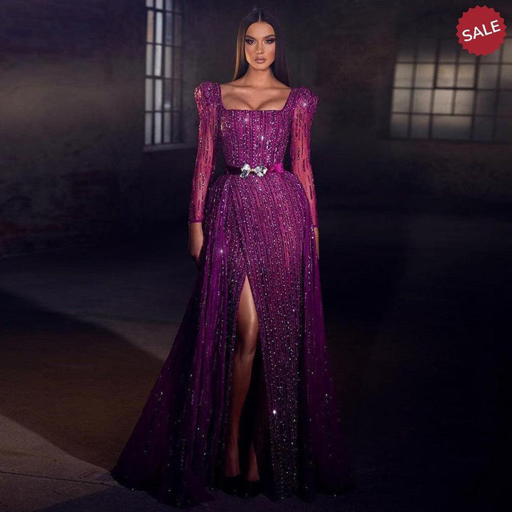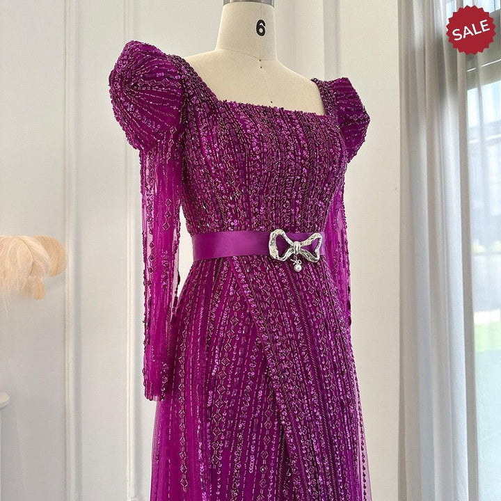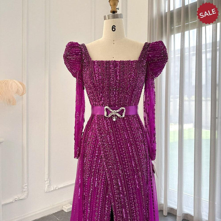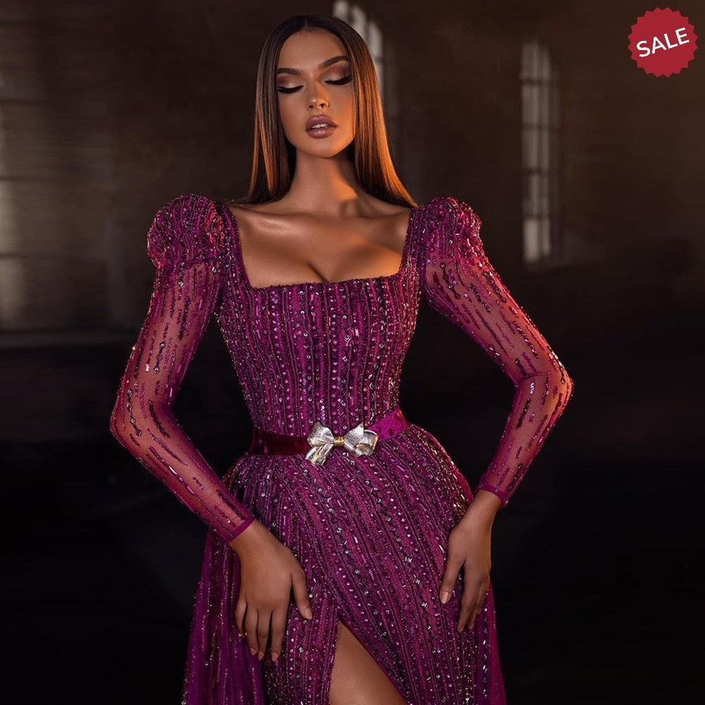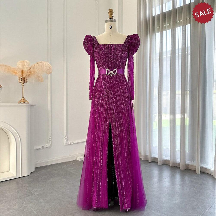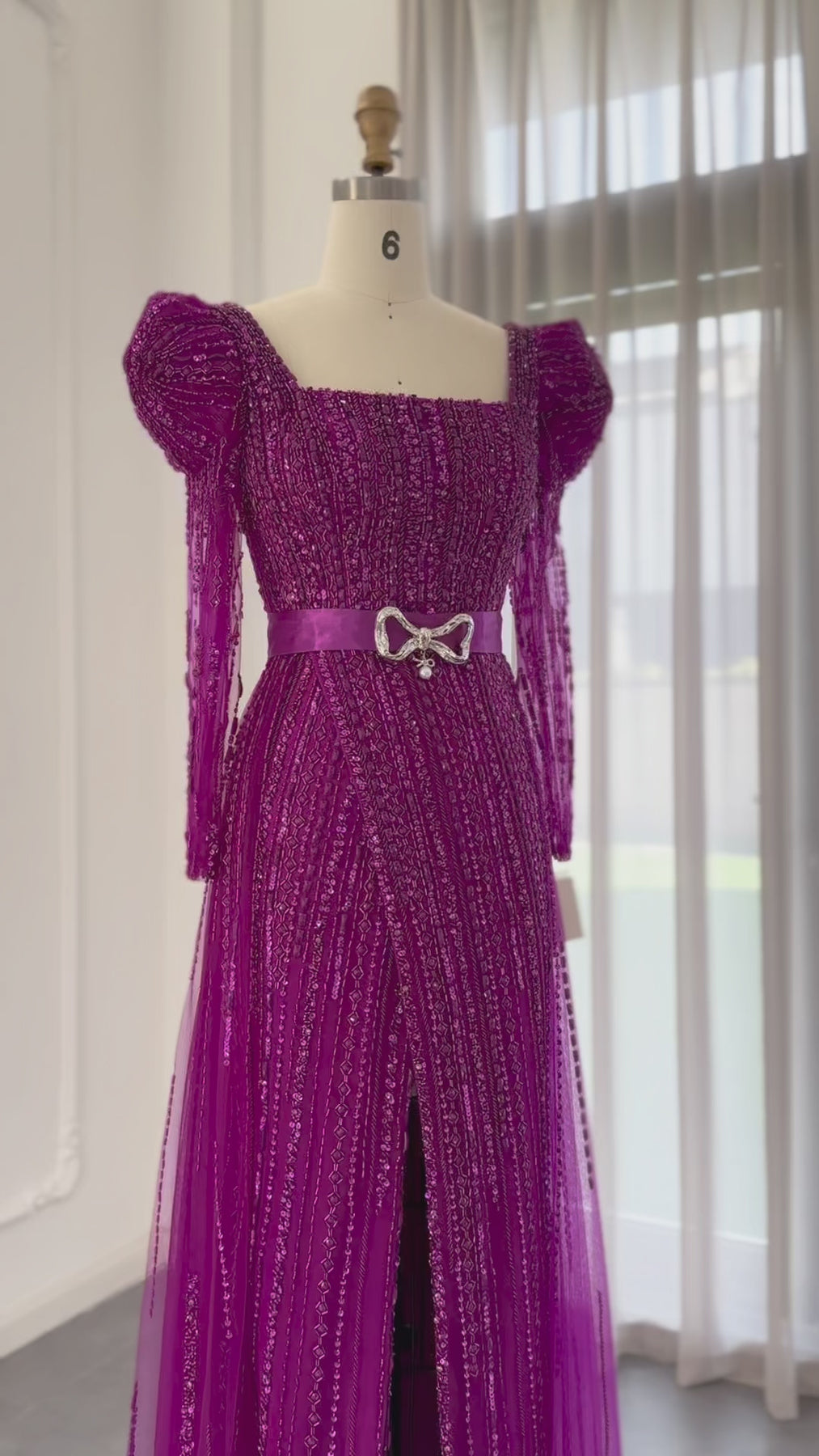 Indulge in luxury and elegance with our Dreamy Vow Dubai Fuchsia Evening Dress. Its long sleeve and overskirt design exudes sophistication, perfect for weddings and parties. Made with high-quality materials, this dress promises to be the highlight of any occasion. Elevate your style with our Arabic formal gown SS318.
