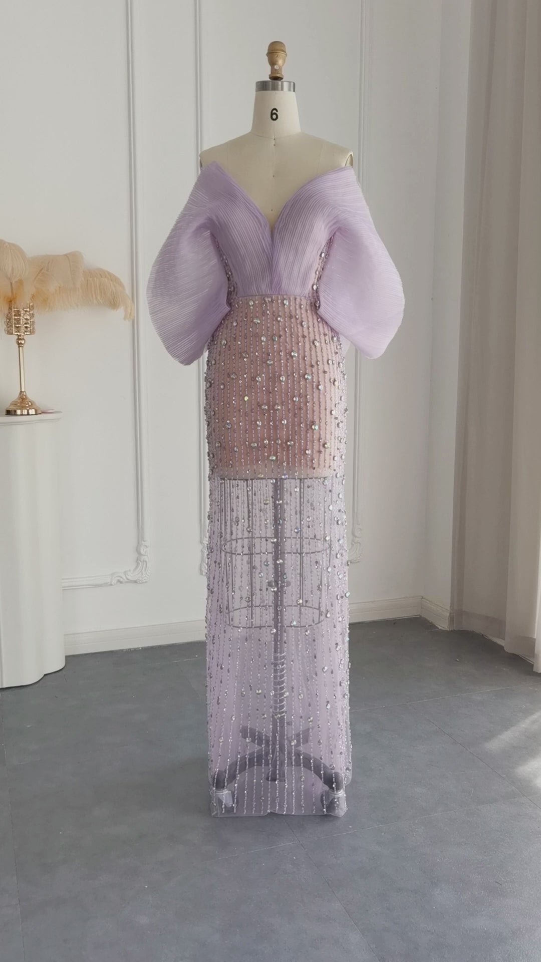 Luxury Lilac Long Evening Dress for Women Wedding Party SS327