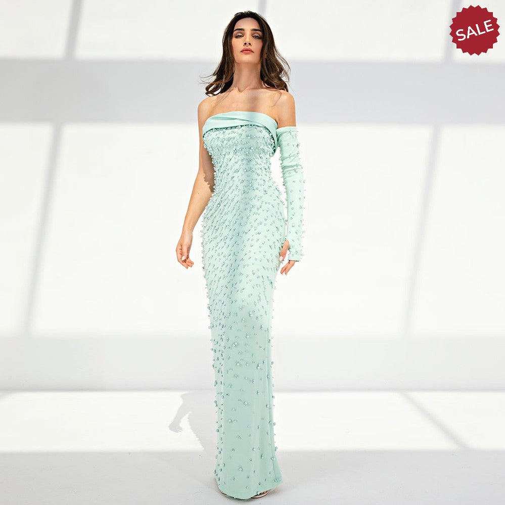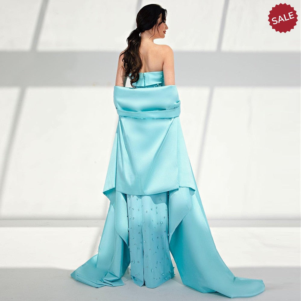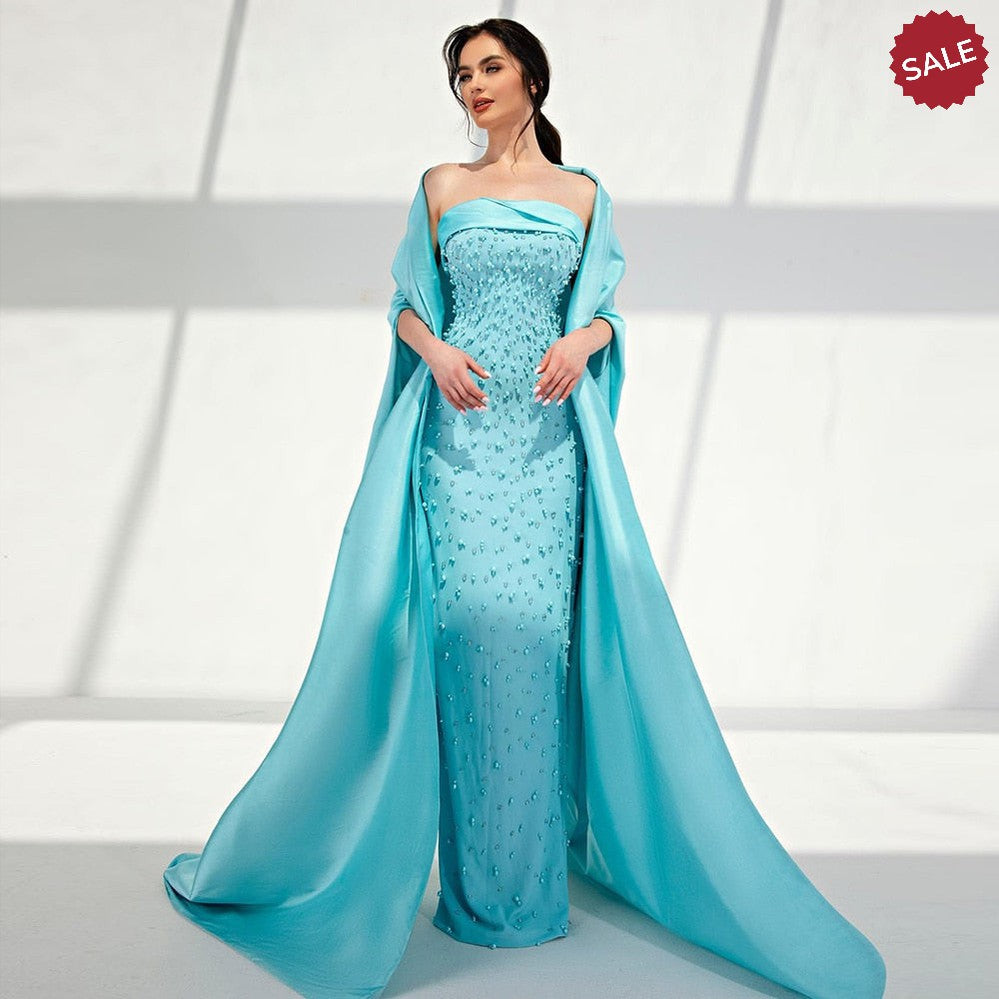 Pearls Mint Green Evening Dresses with Cape SS378