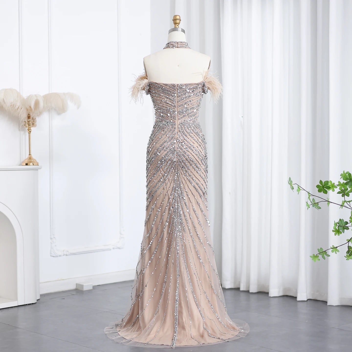 Luxury Feather Beaded Mermaid Evenig Dress with Chocker SS167