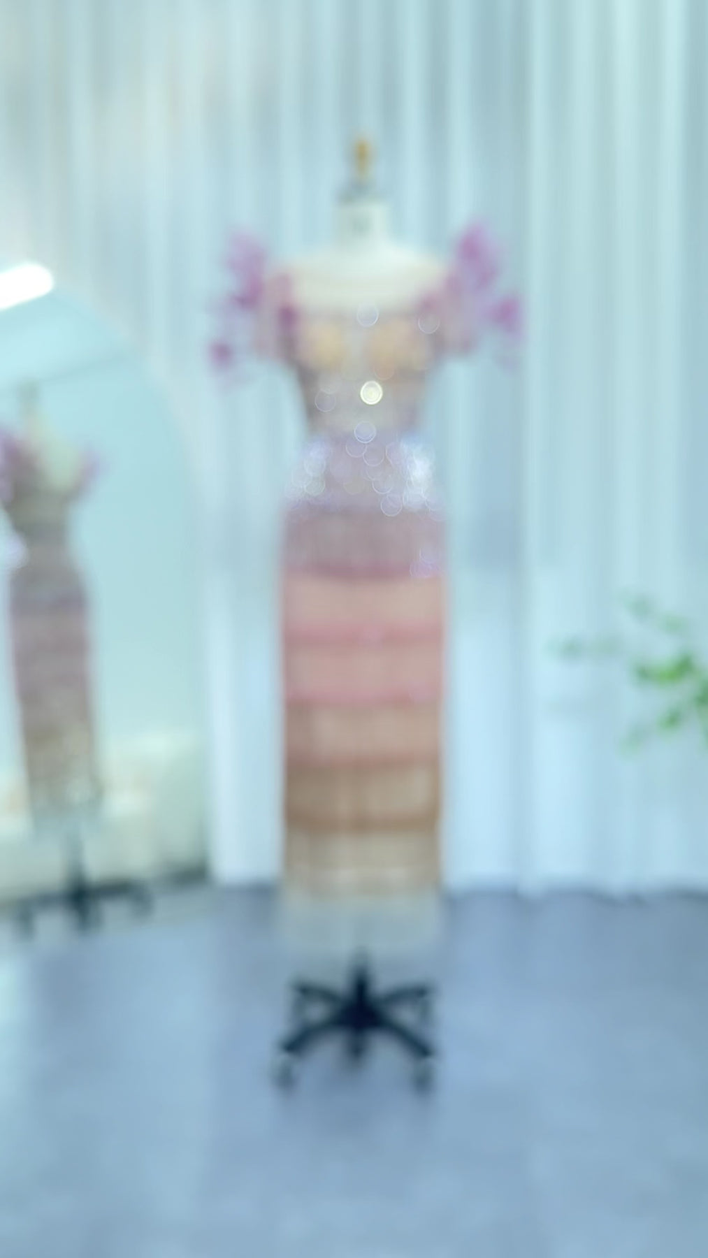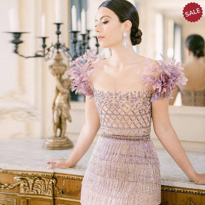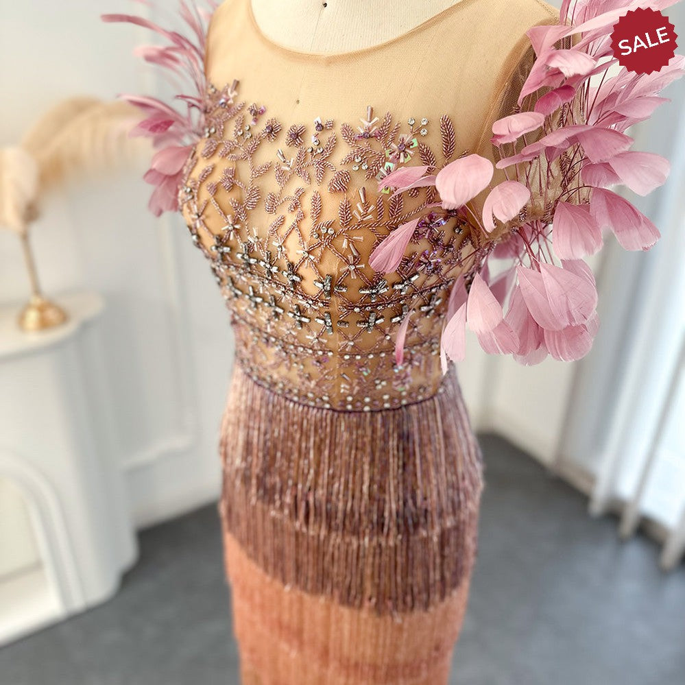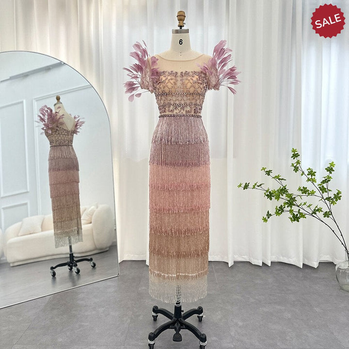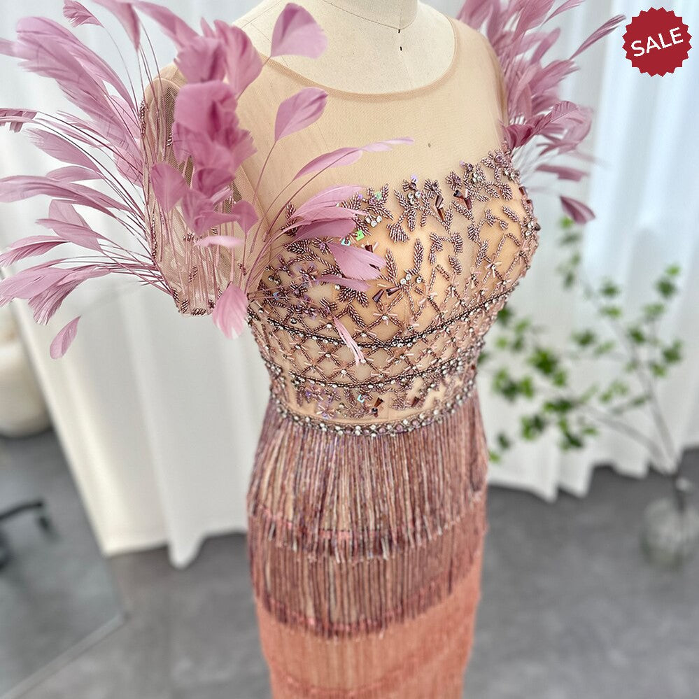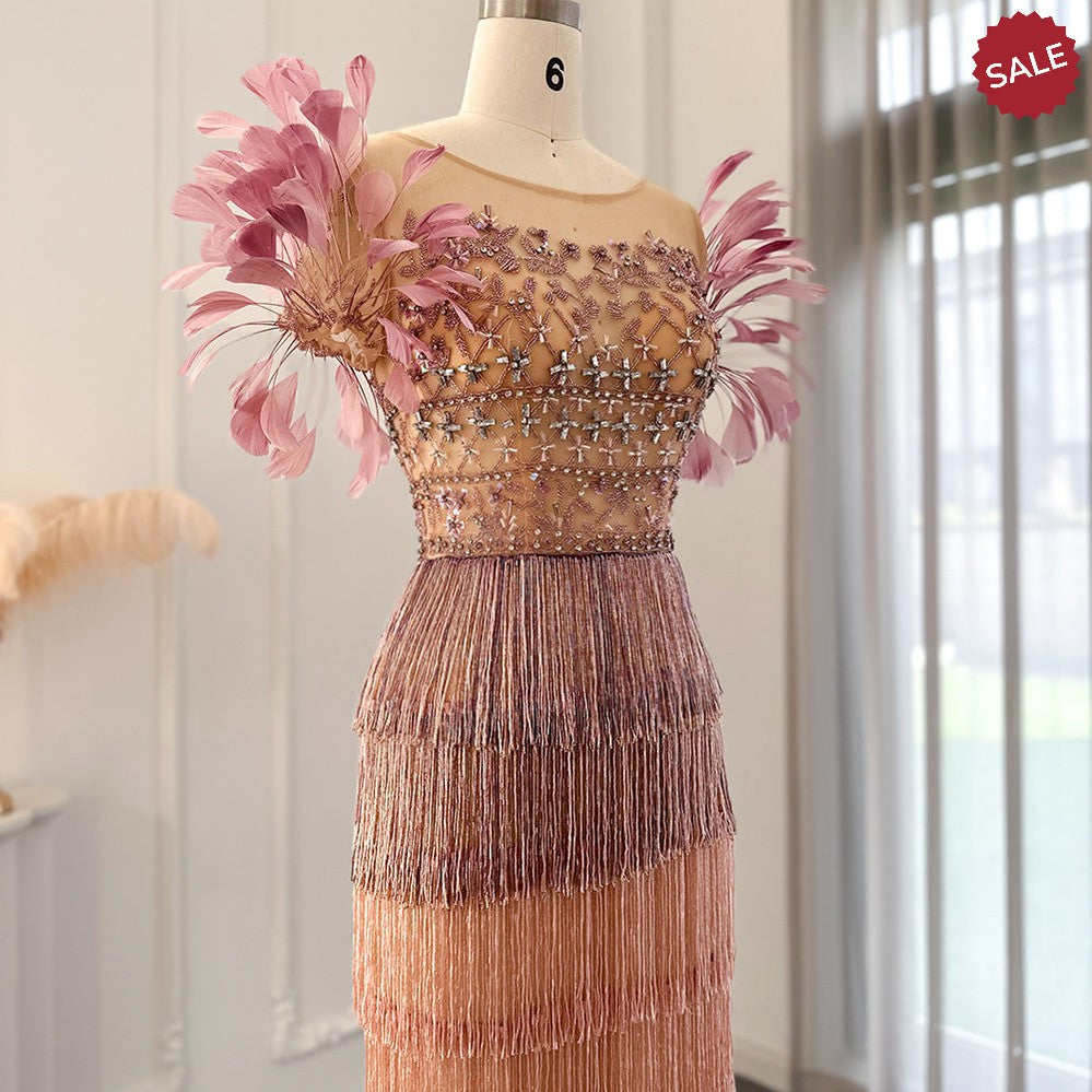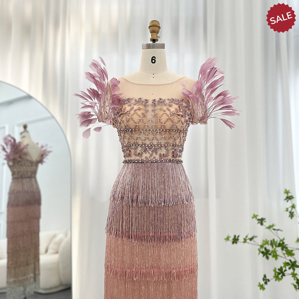 Luxury Feathers Tassel Lilac Dubai Evening Dresses SS379