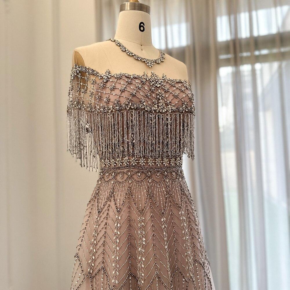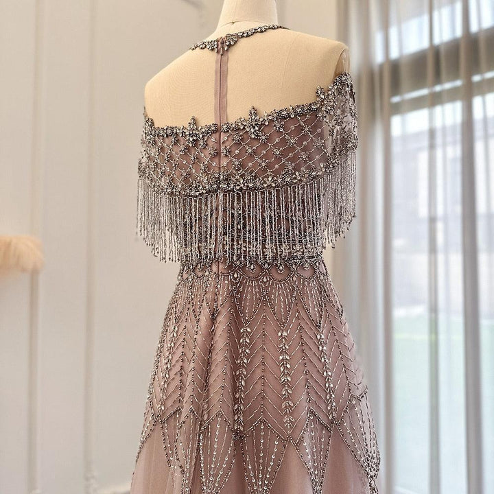 Dreamy Vow Luxury Tassel Heavy Beaded Arabic Evening Dresses for Women Wedding Party Elegant Long Formal Gowns In Stock 061