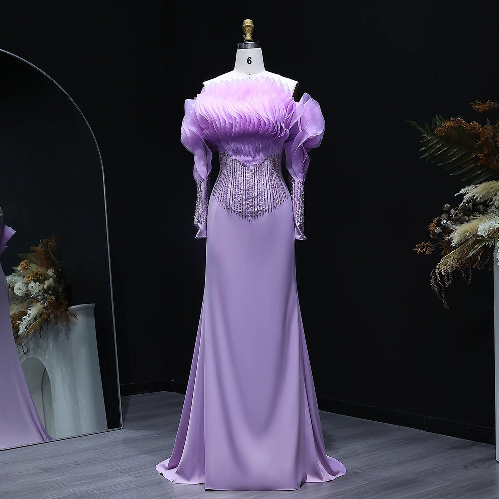 Arabic One Shoulder Lilac Dubai Evening Dresses with Cape Elegant SF545