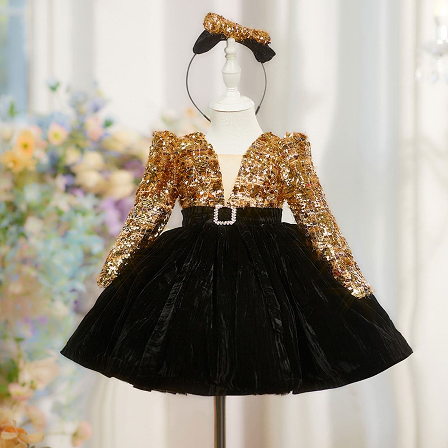 Elegant Gold Flower Girl Dress for Kids Princess Birthday Party Wedding D230