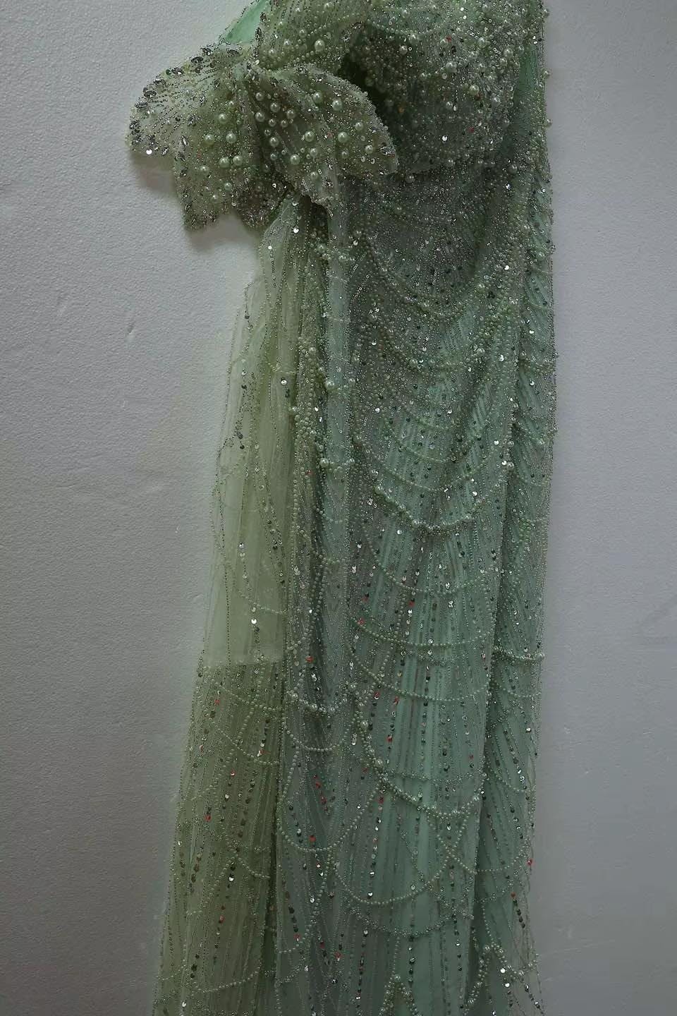 Luxury Pearls 3D Flower Green One Shoulder Evening Dress SS688