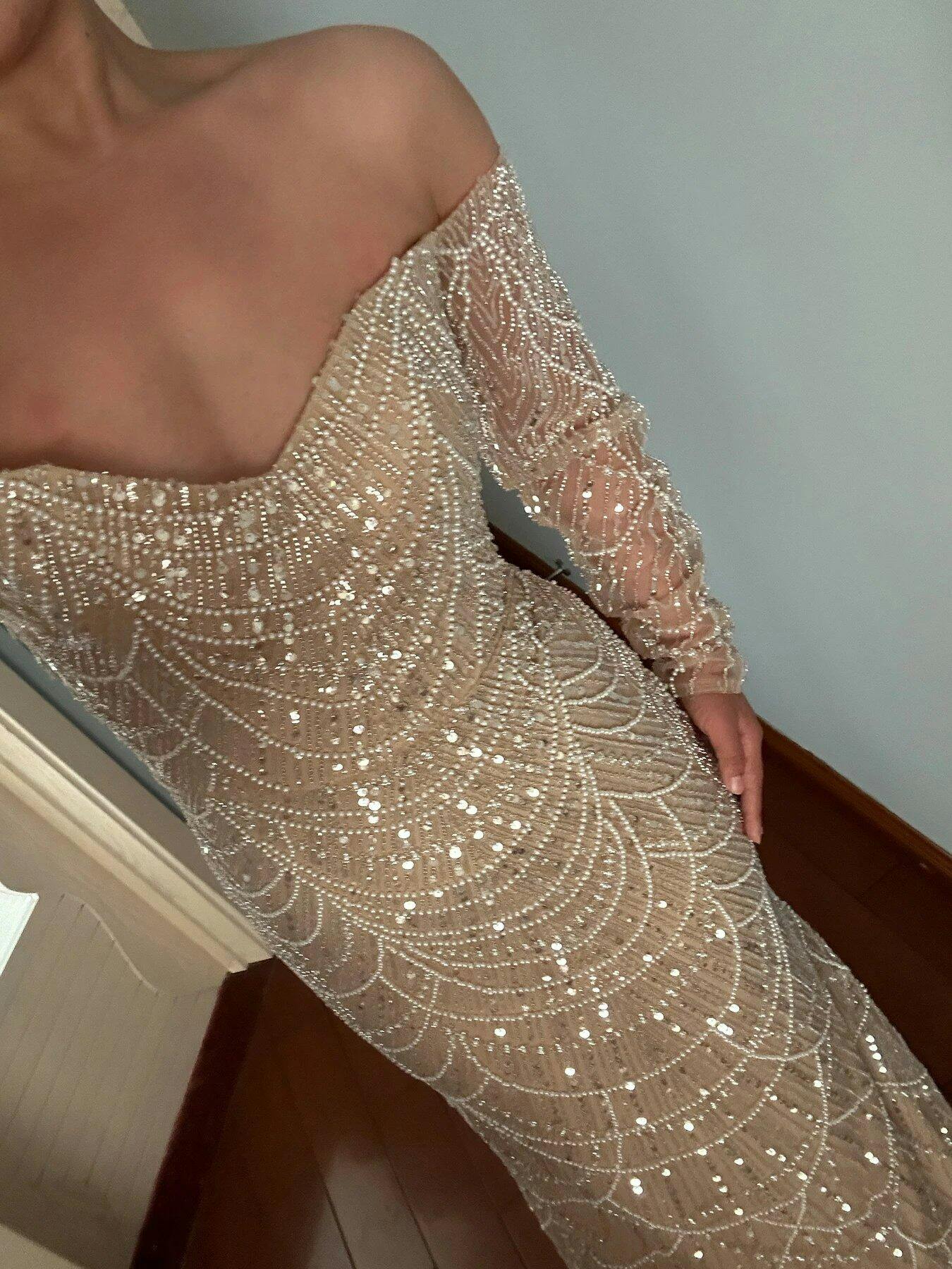 Indulge in luxury with the Dreamy Vow Evening Dress 2025. Designed with an elegant off the shoulder neckline and mermaid silhouette, this dress exudes sophistication. Perfect for weddings and formal events, the long sleeves add a touch of modesty while the figure-hugging design highlights your curves. Elevate your style and make a statement with this stunning dress.