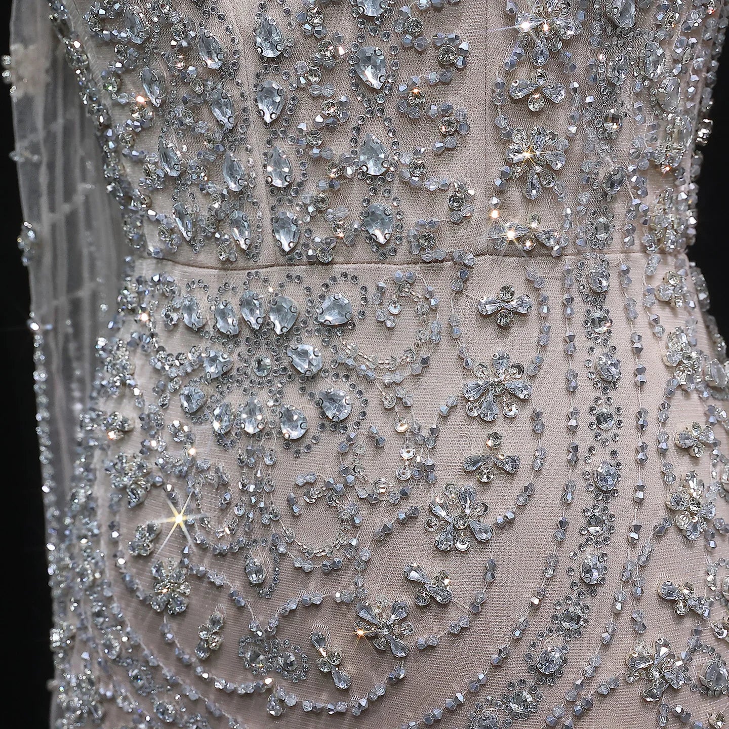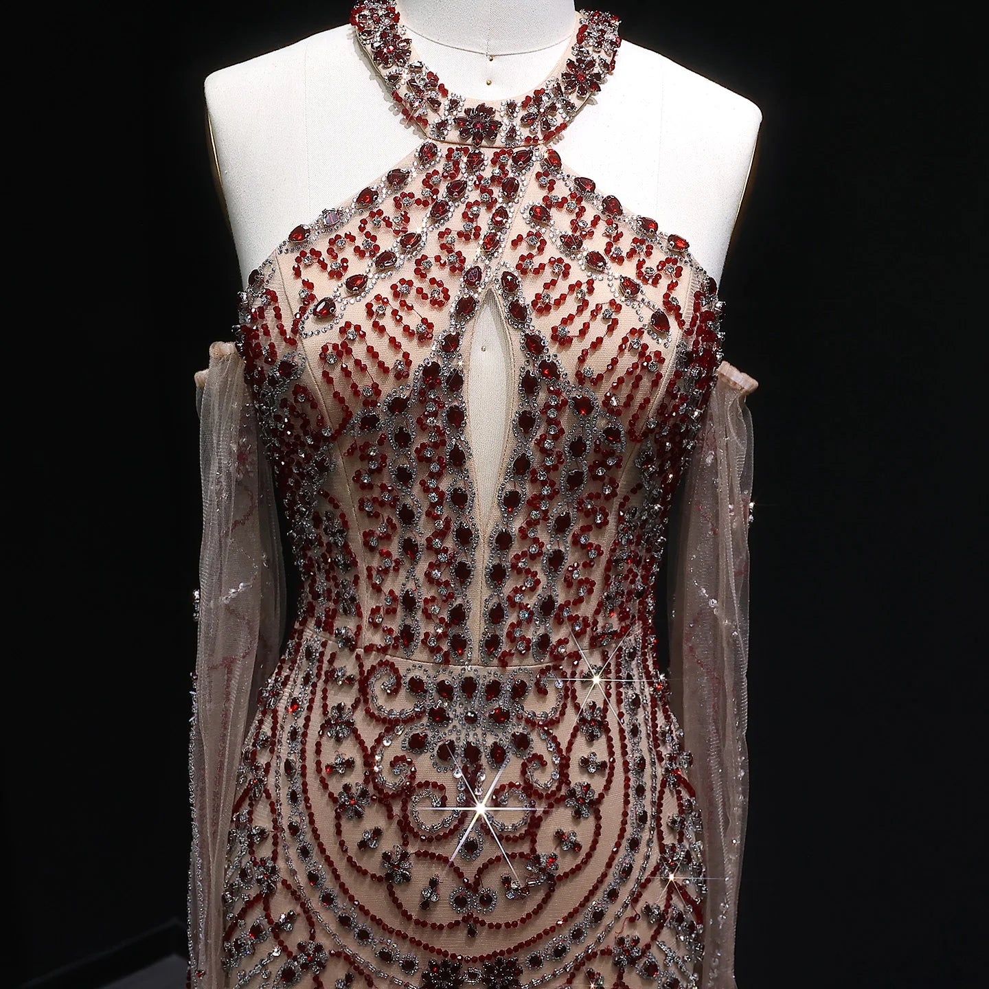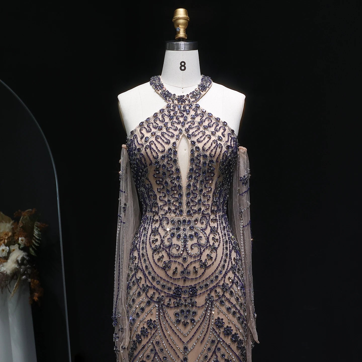 Elegant Beaded Halter Evening Gown with Matching Gloves SS118