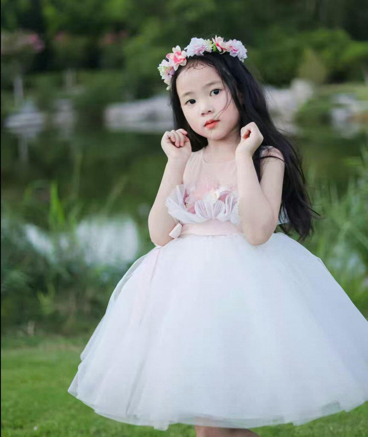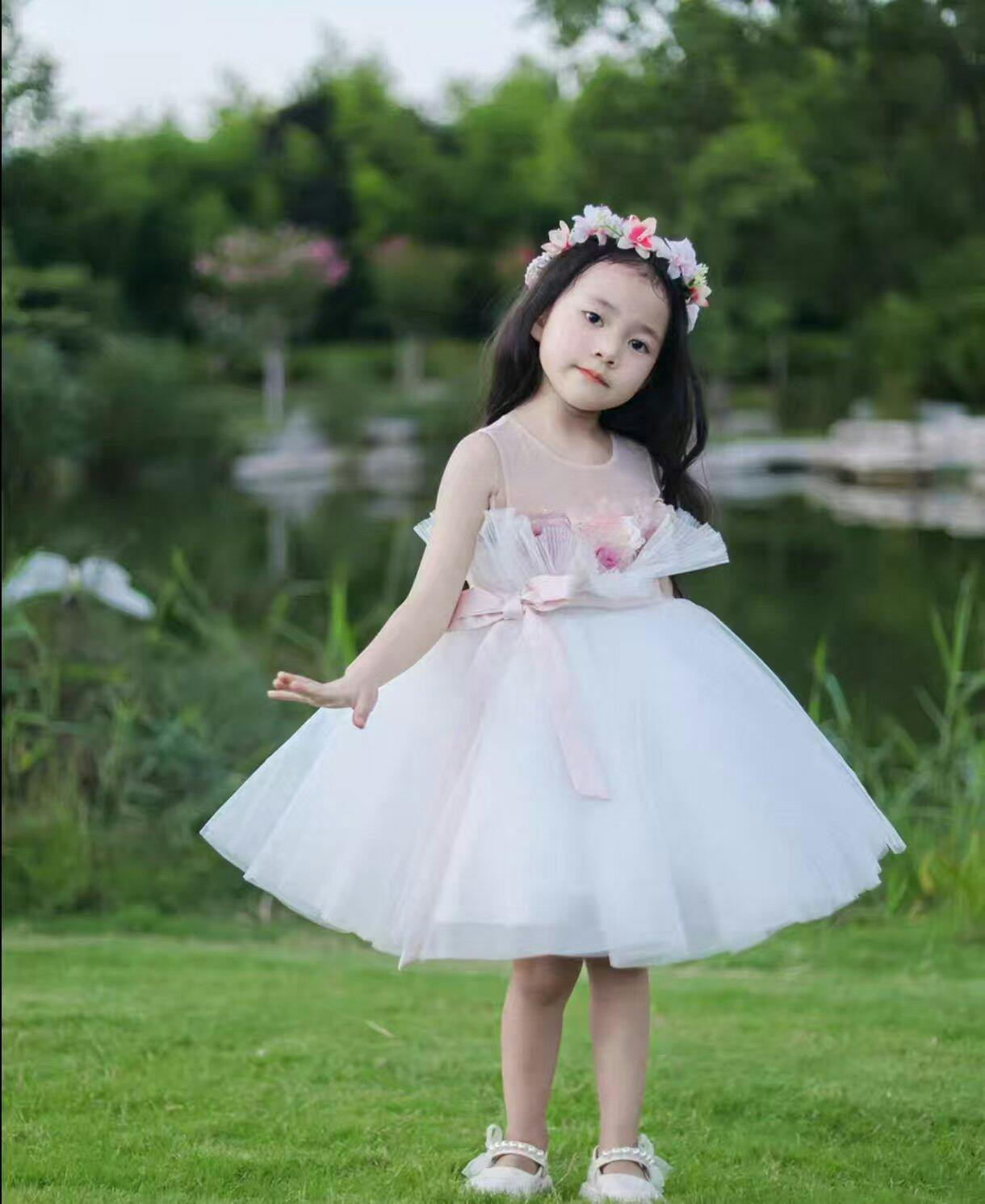 Pink Flower Girl Dress Applique Feather Tulle Keen Length J563