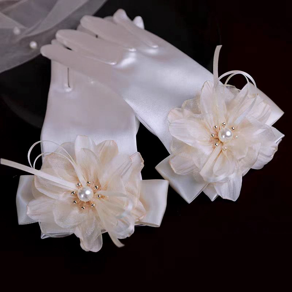 Sweet Lace Satin Gloves Tulle Hand Jewelry Wedding Dress Accessories W100
