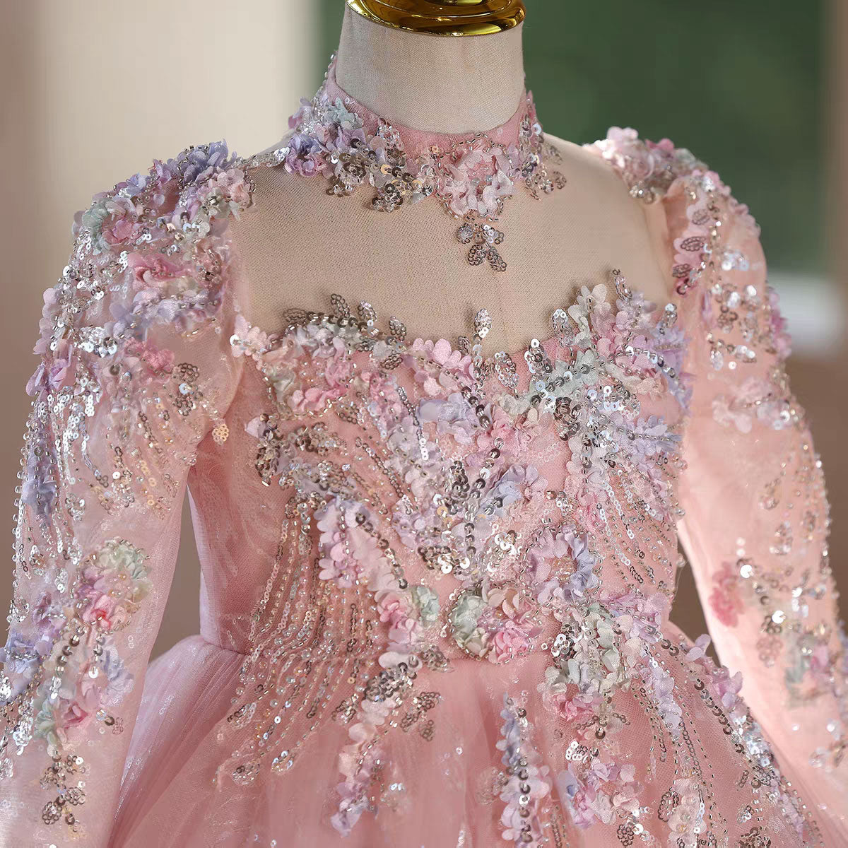 Elegant Pink Flower Girl Dress Princess Birthday Party Gown D183