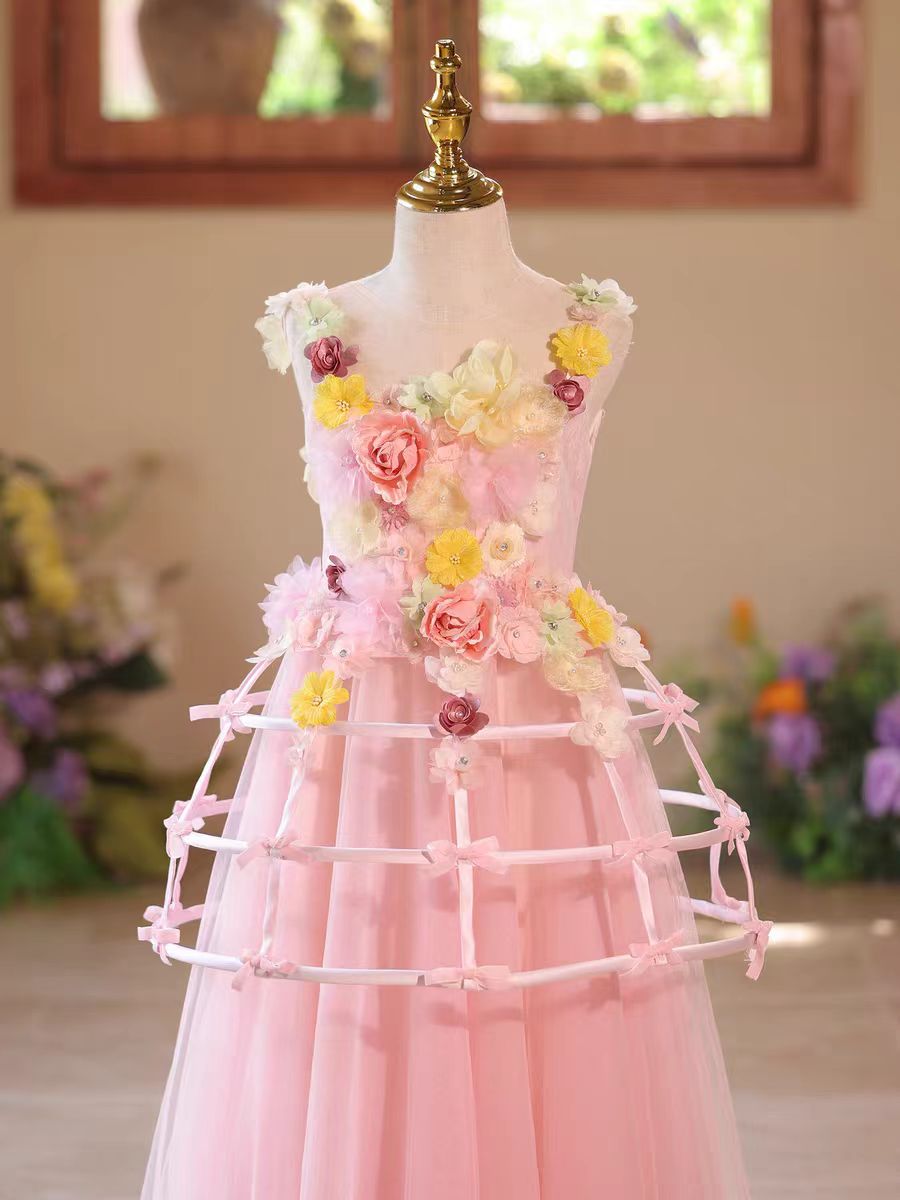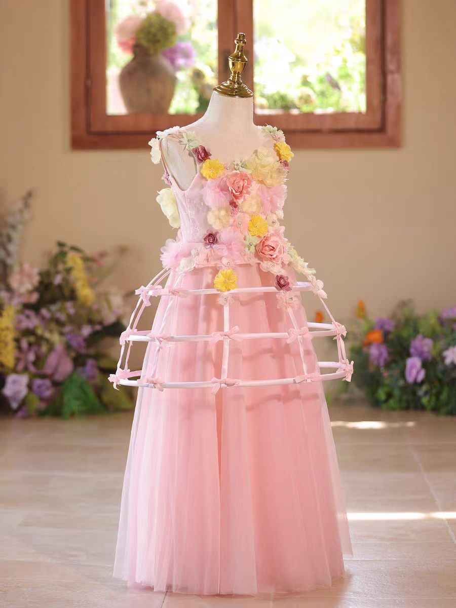 Elegant Pink Tulle Flower Girl Dress for Wedding Birthday J586