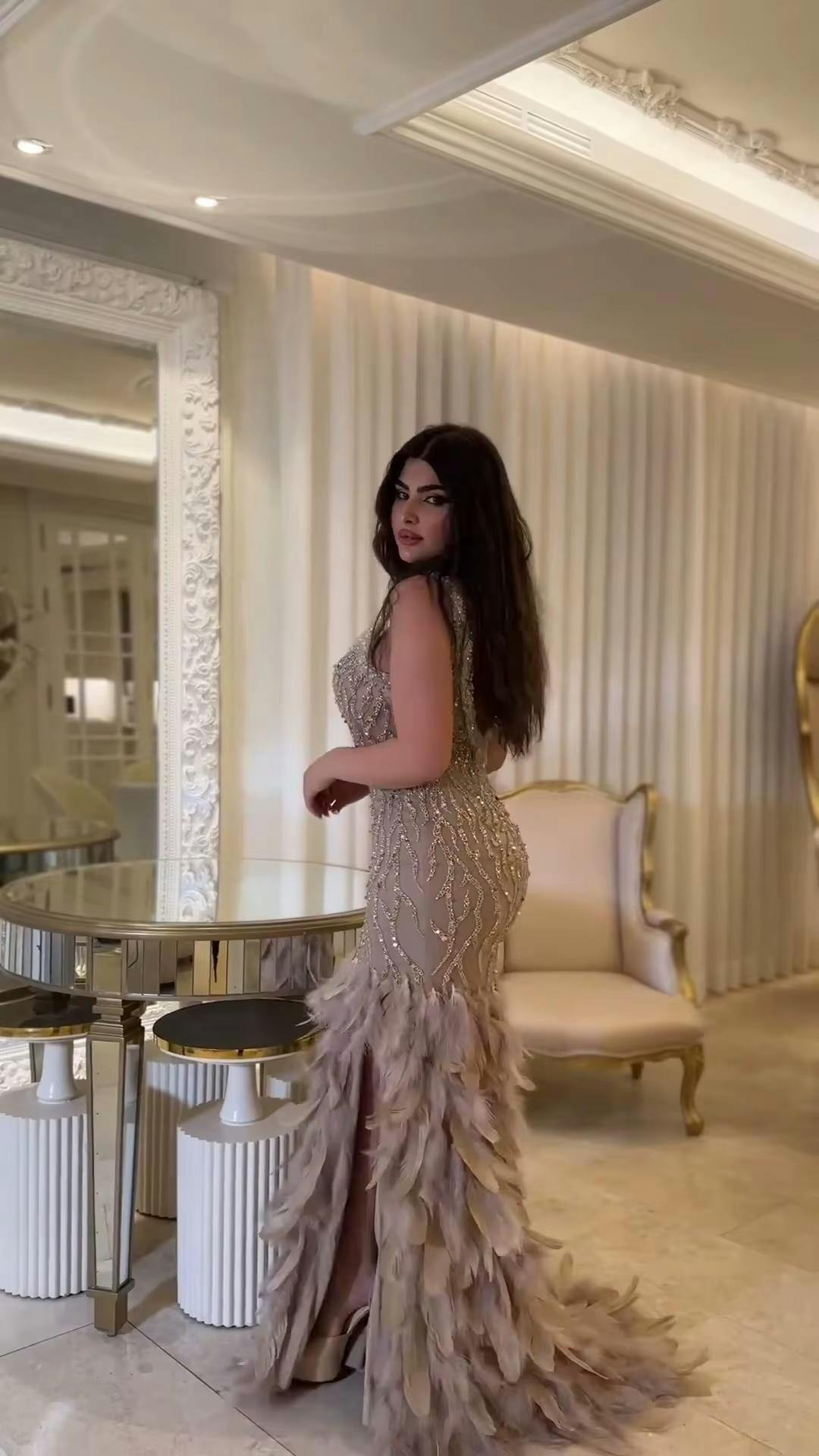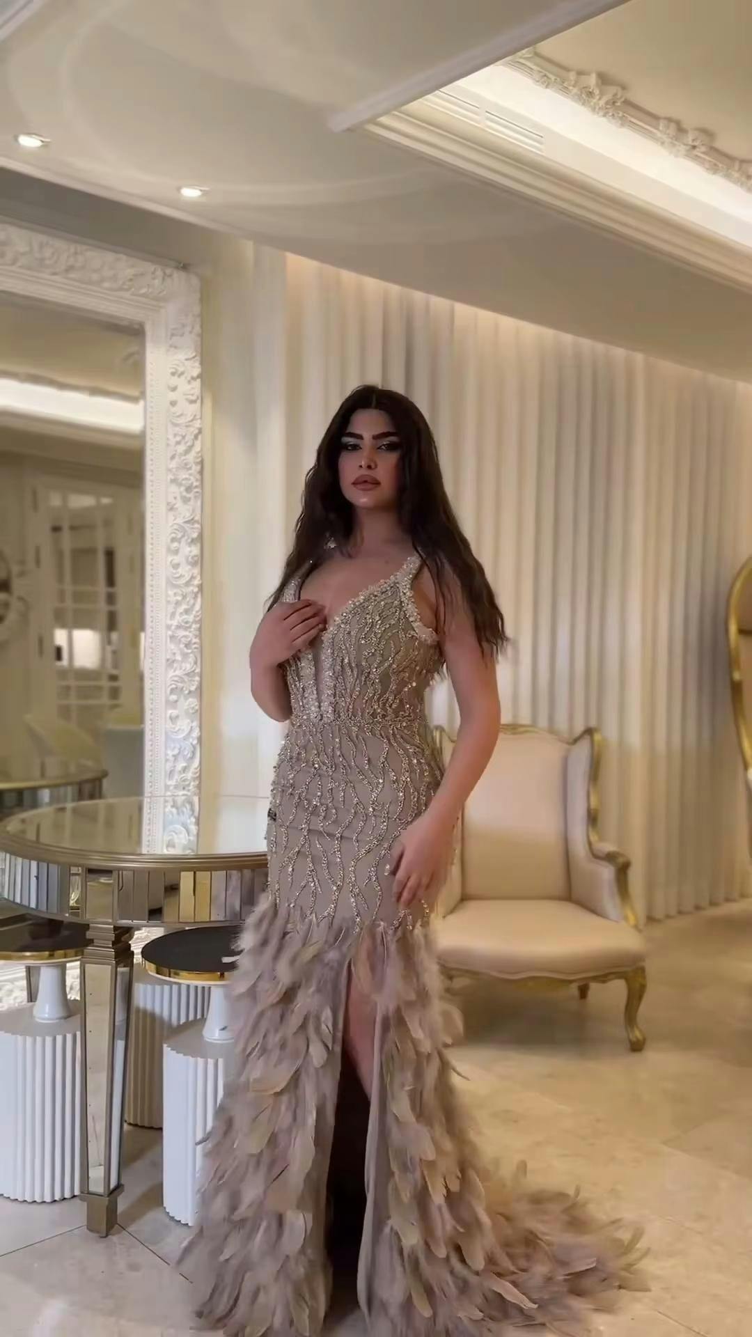 Indulge in luxury with the Dreamy Vow Feathers Pink Mermaid Evening Dress. The V-Neck and Blue Side Slit add a touch of elegance to this stunning dress. Perfect for weddings, proms, or any special occasion, this dress will make you feel like a true royalty.