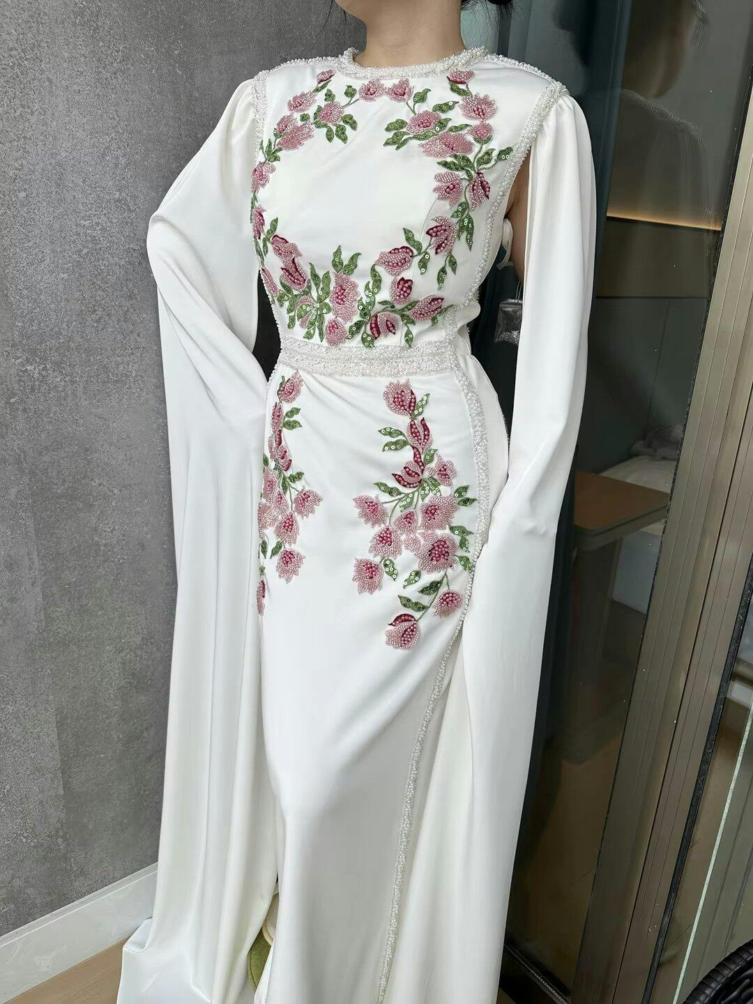Achieve an effortless elegance with the Dreamy Vow Elegant White Evening Dress SS541. The delicate long sleeves and intricate embroidery add a touch of sophistication to any occasion. Embrace the romantic floral design and make a statement with this stunning dress.