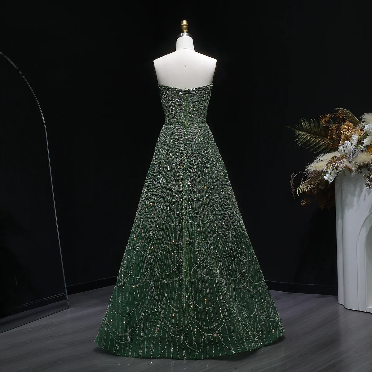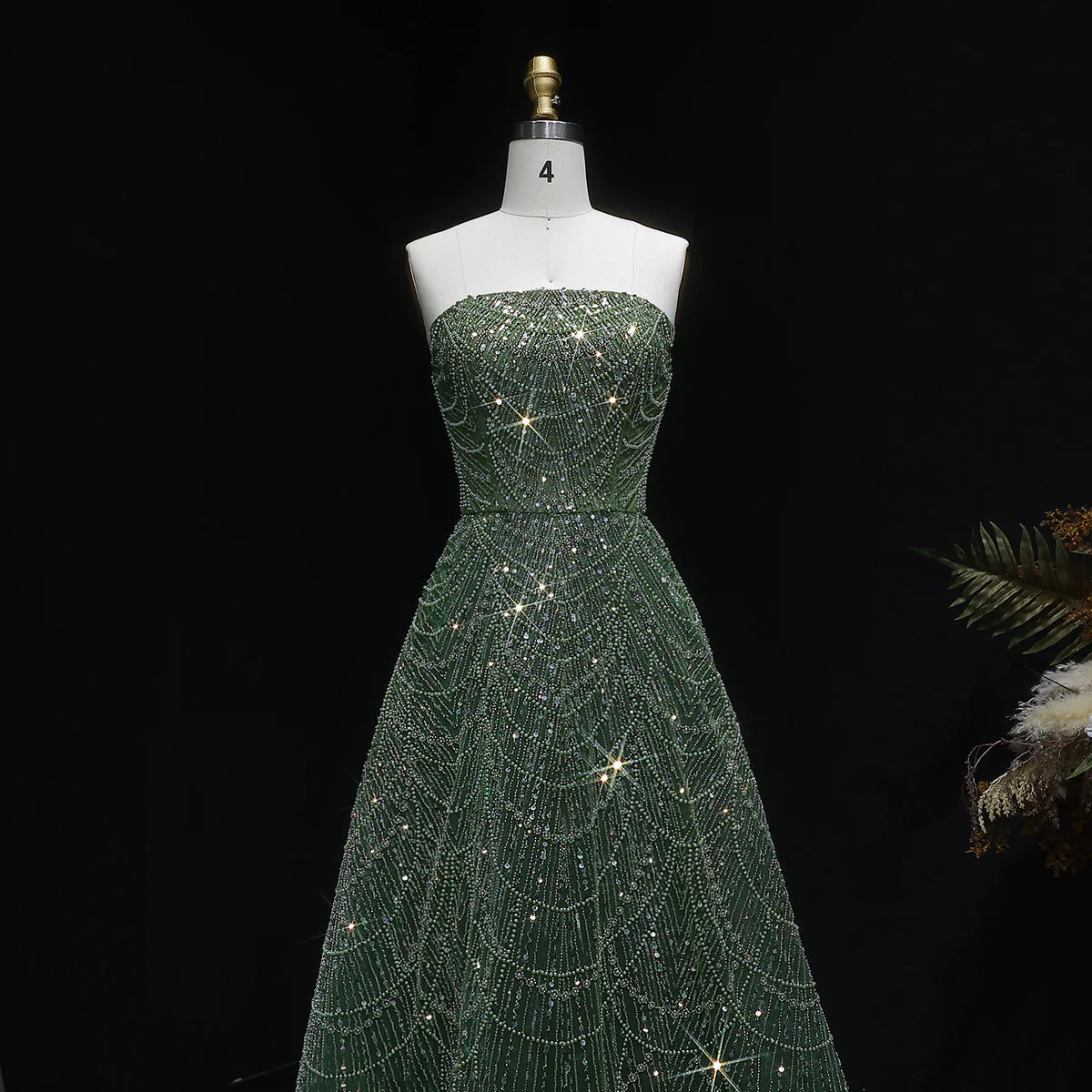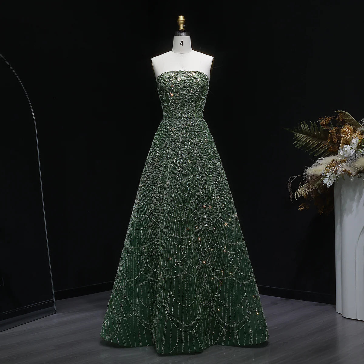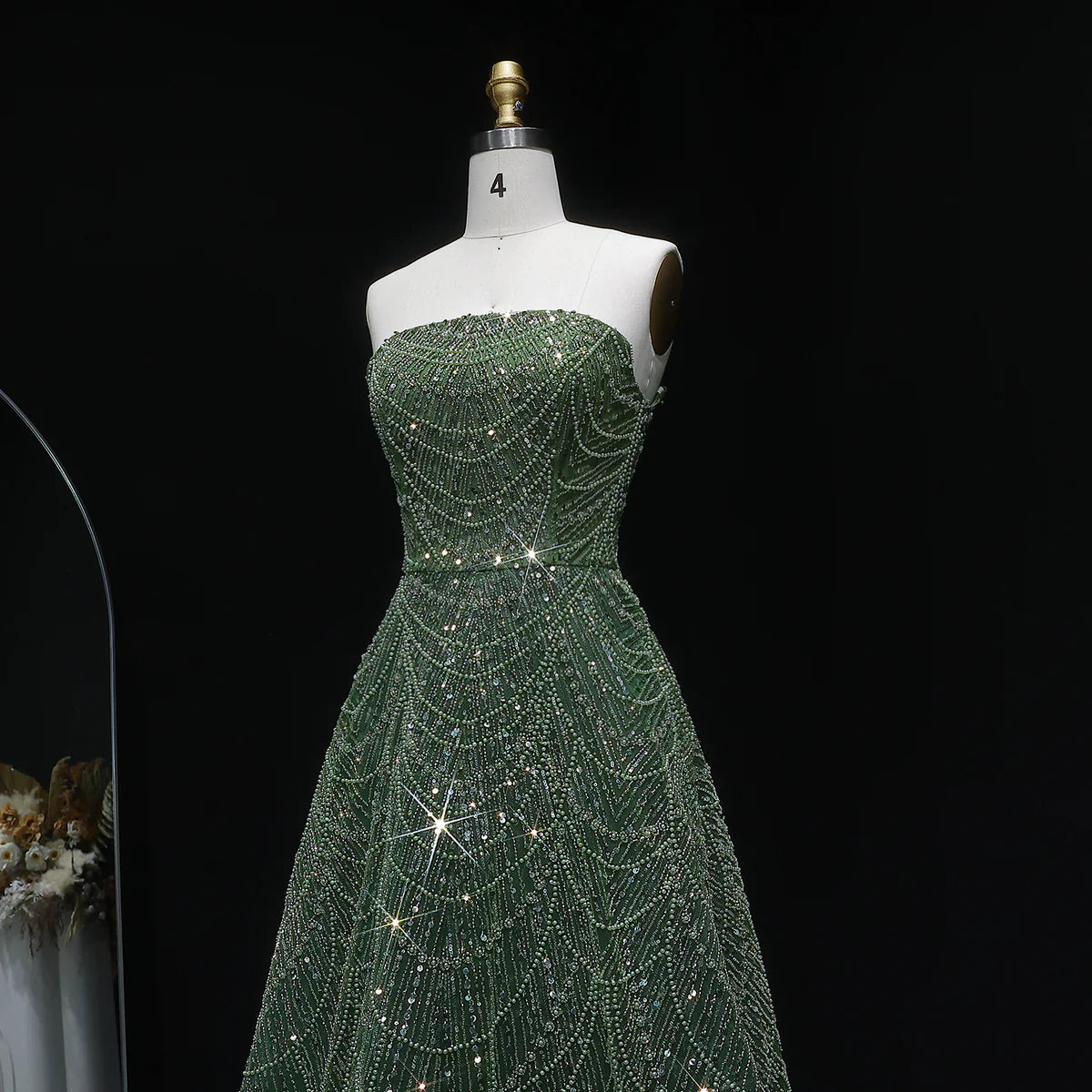 Sparkling Beaded Blue Strapless Evening Dress SS620