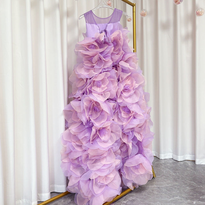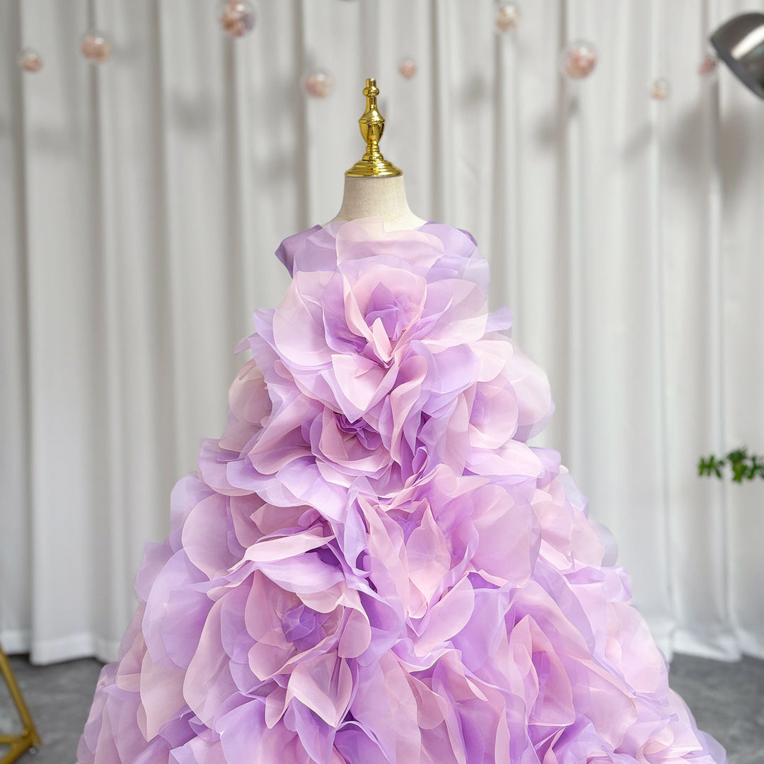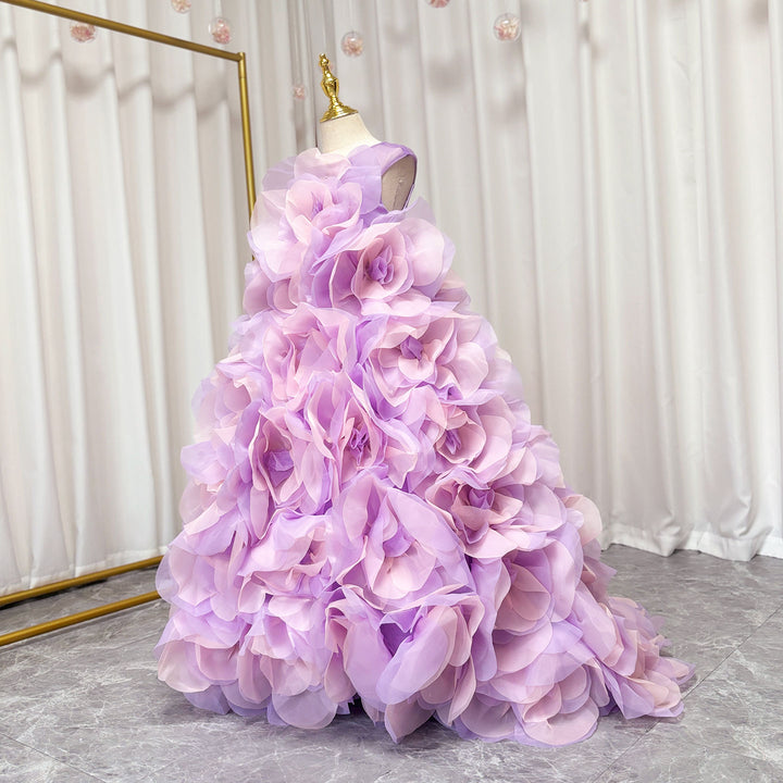 Luxury Arabic Lilac Girl Dressndmade 3D Flowers Kids Princess J201