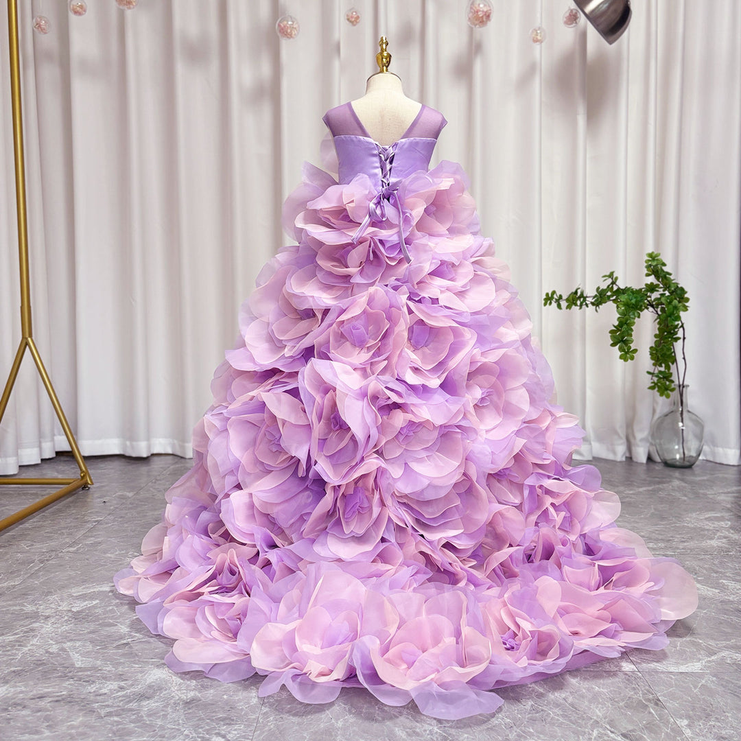 DreamyVow Luxury Arabic Lilac Girl Dressndmade 3D Flowers Dubai Kids Princess Birthday Wedding Party Ball Gown 2024 J201-DreamyVow