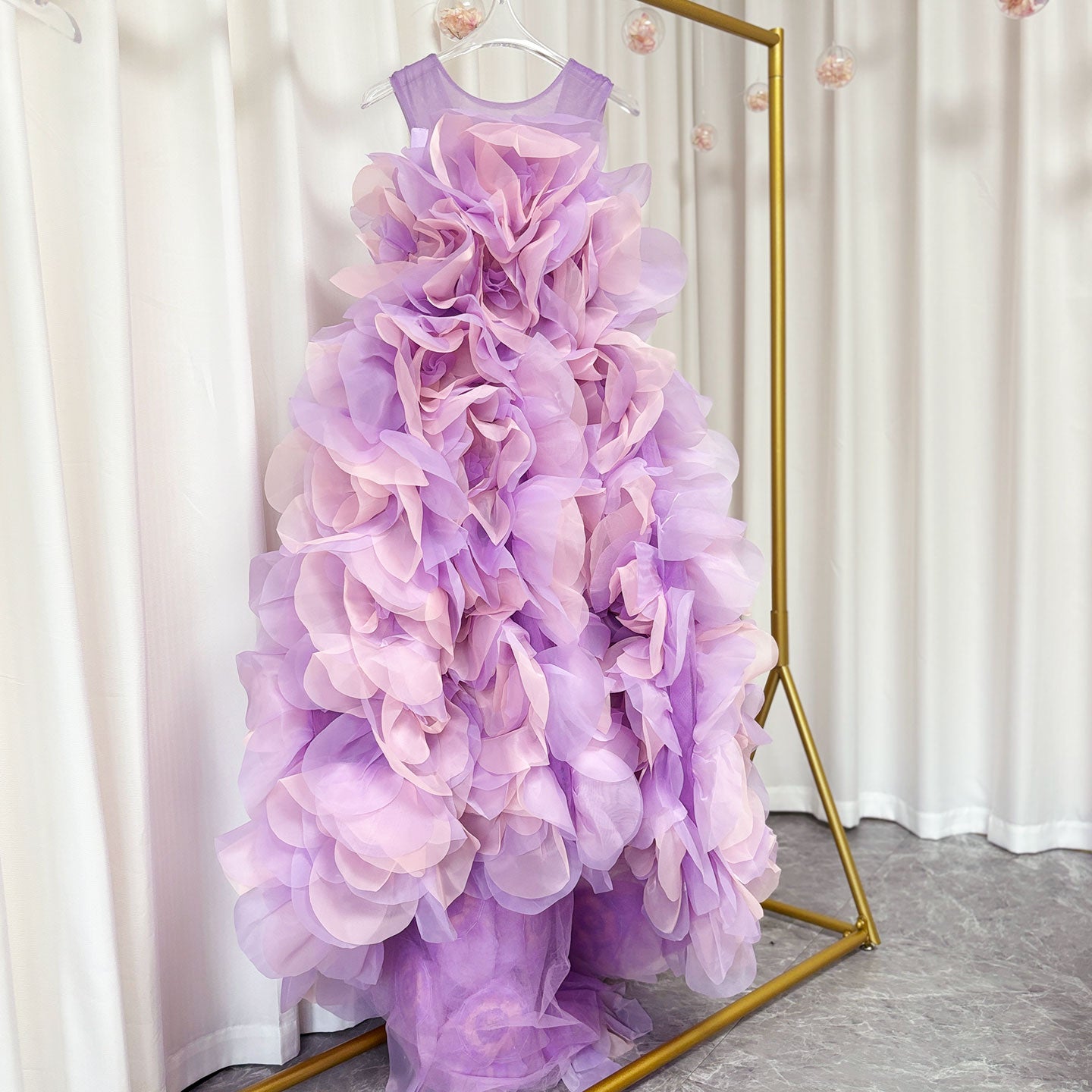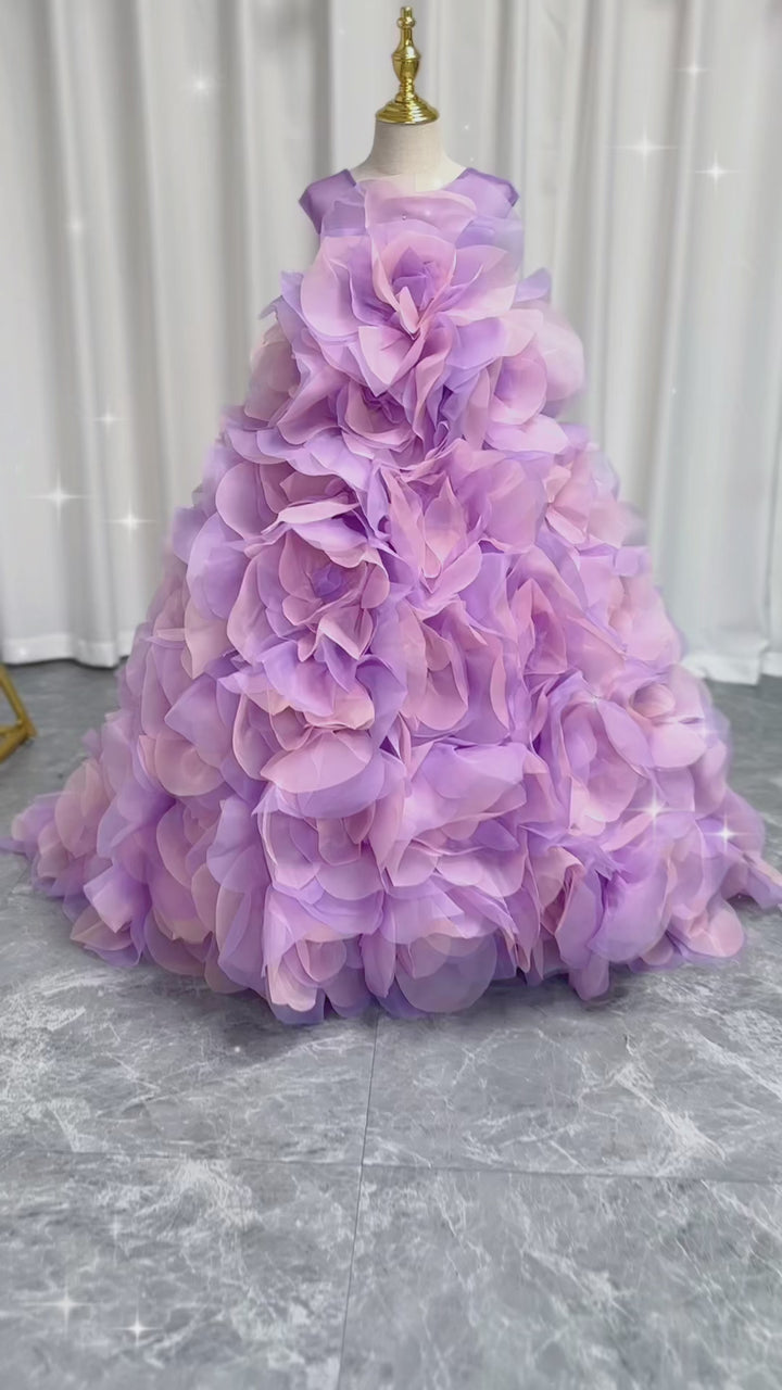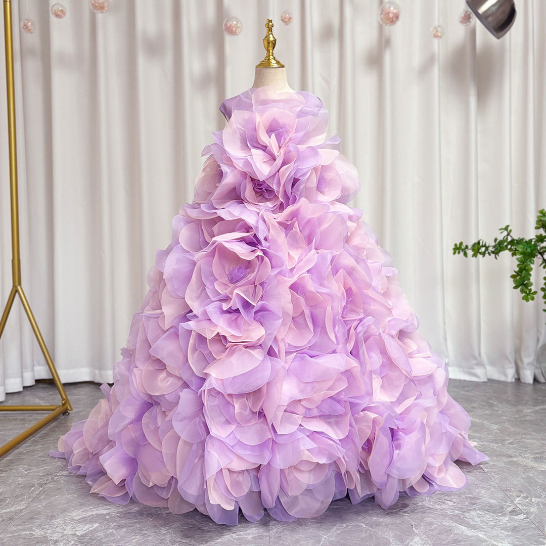 Elevate your little girl's special occasions with the Dreamy Vow Luxury Arabic Lilac Girl Dress. Handmade 3D flowers add a touch of elegance to this Dubai-inspired ball gown. Perfect for princess-themed birthday parties or weddings, your child will feel like royalty in this stylish and luxurious dress. Available in 2024 J201.