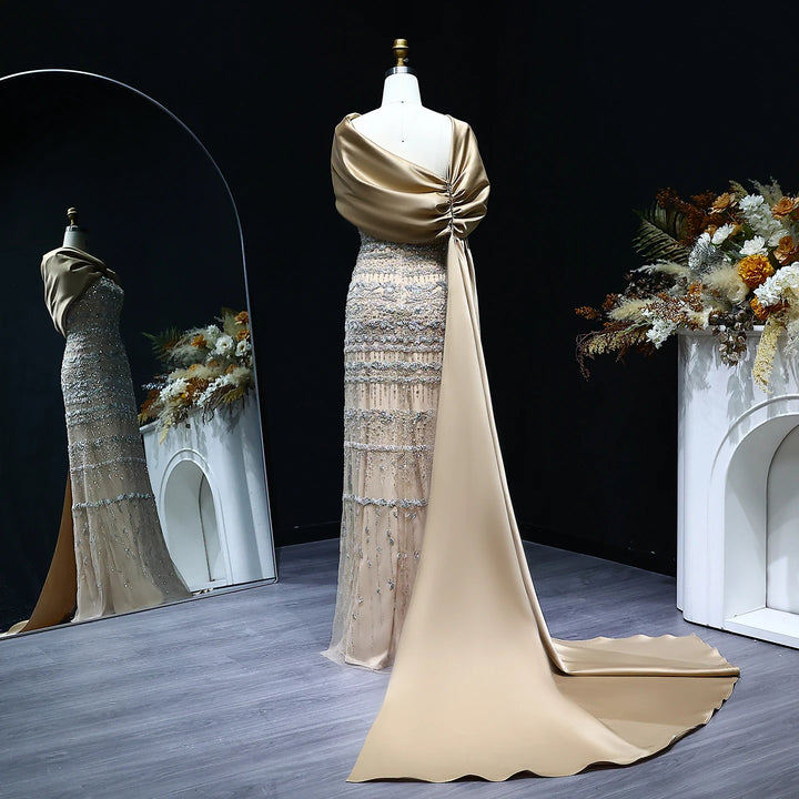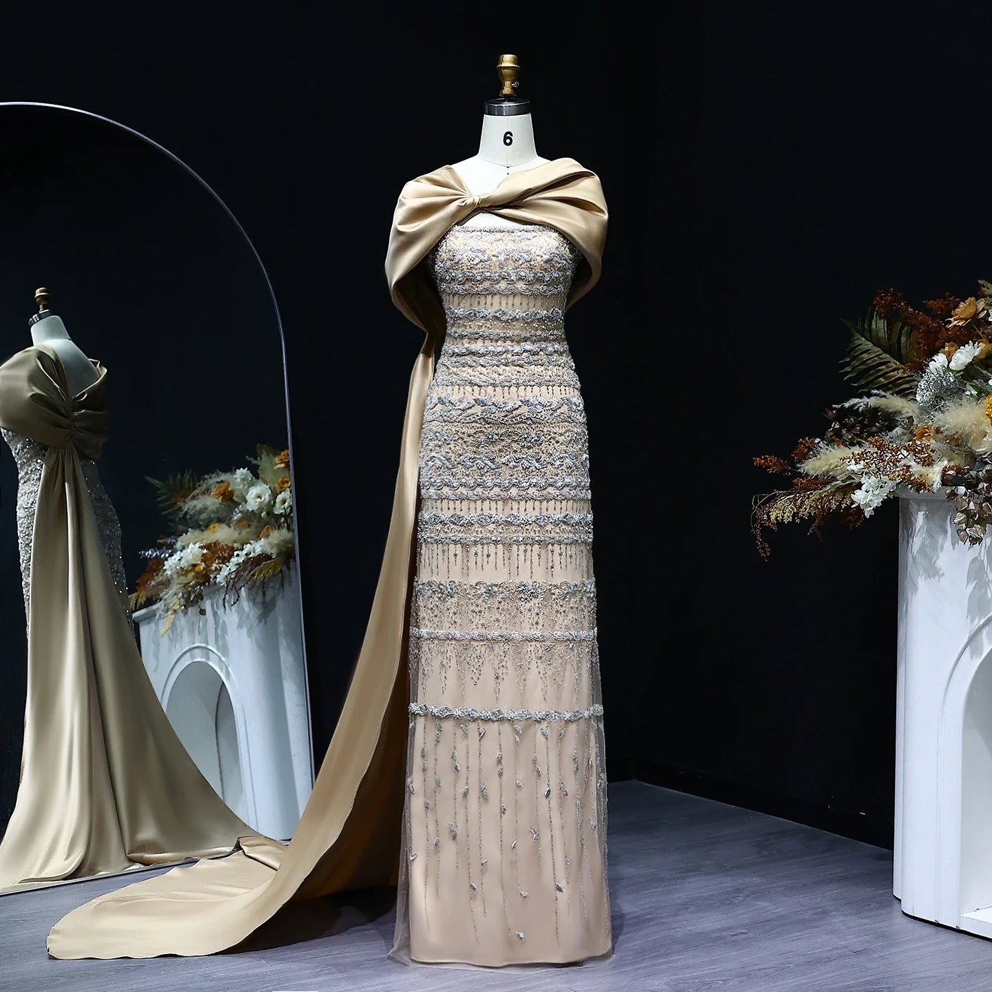 Luxury Dubai Evening Dress with Cape Long Party Gowns SS238B