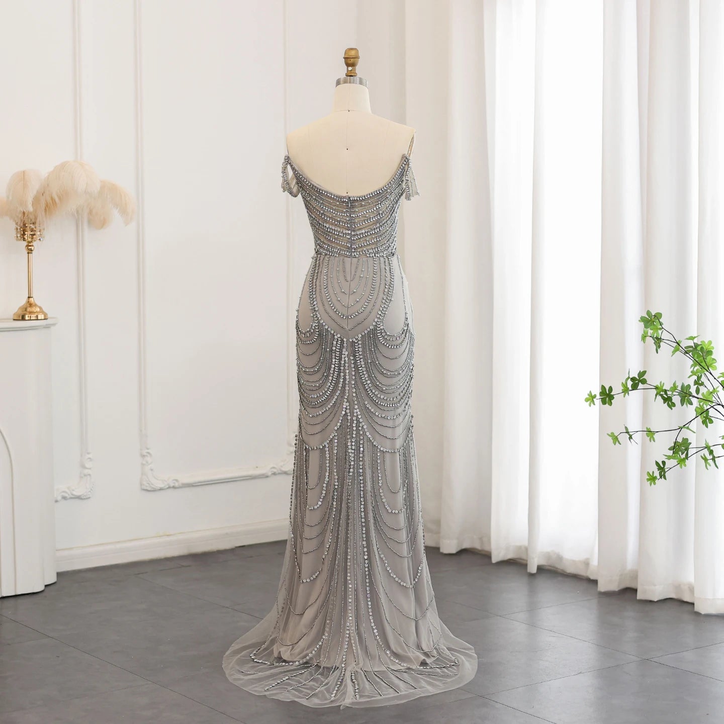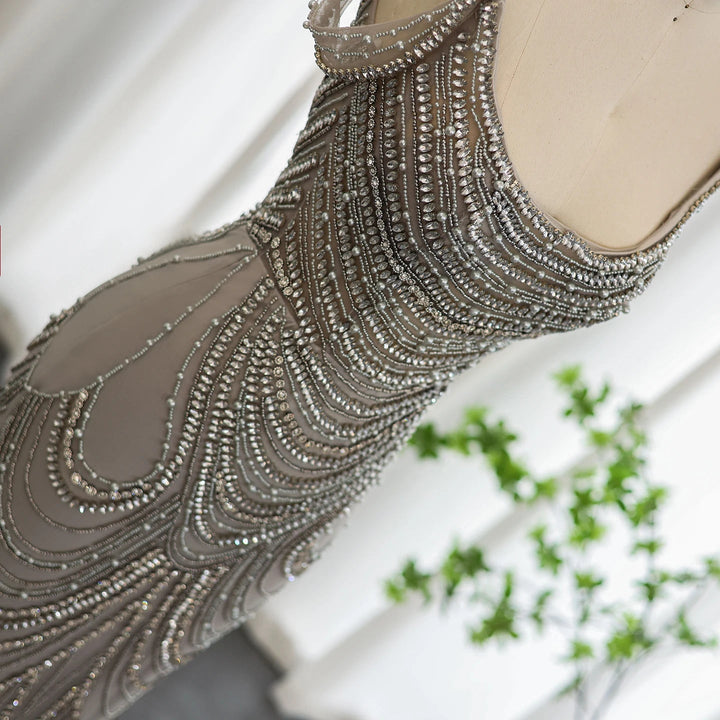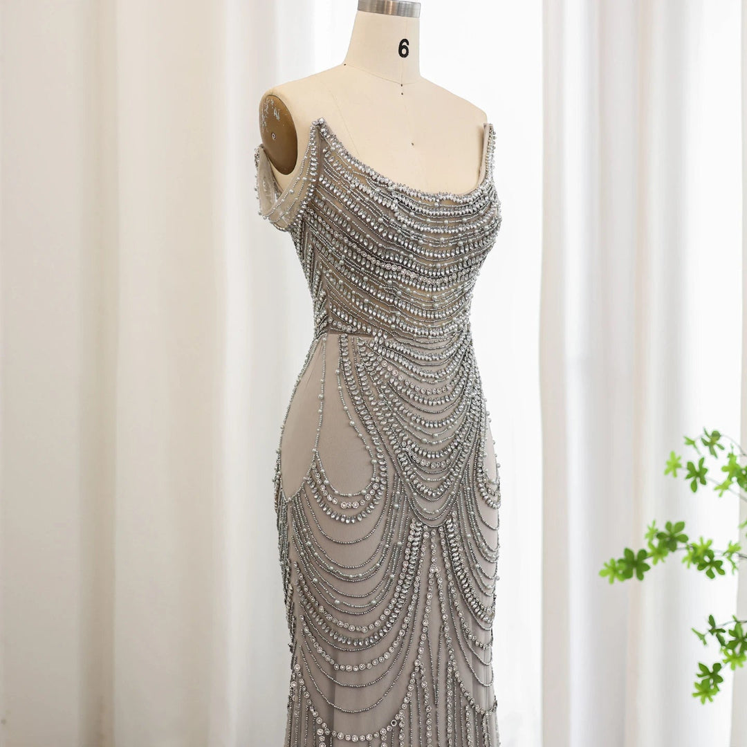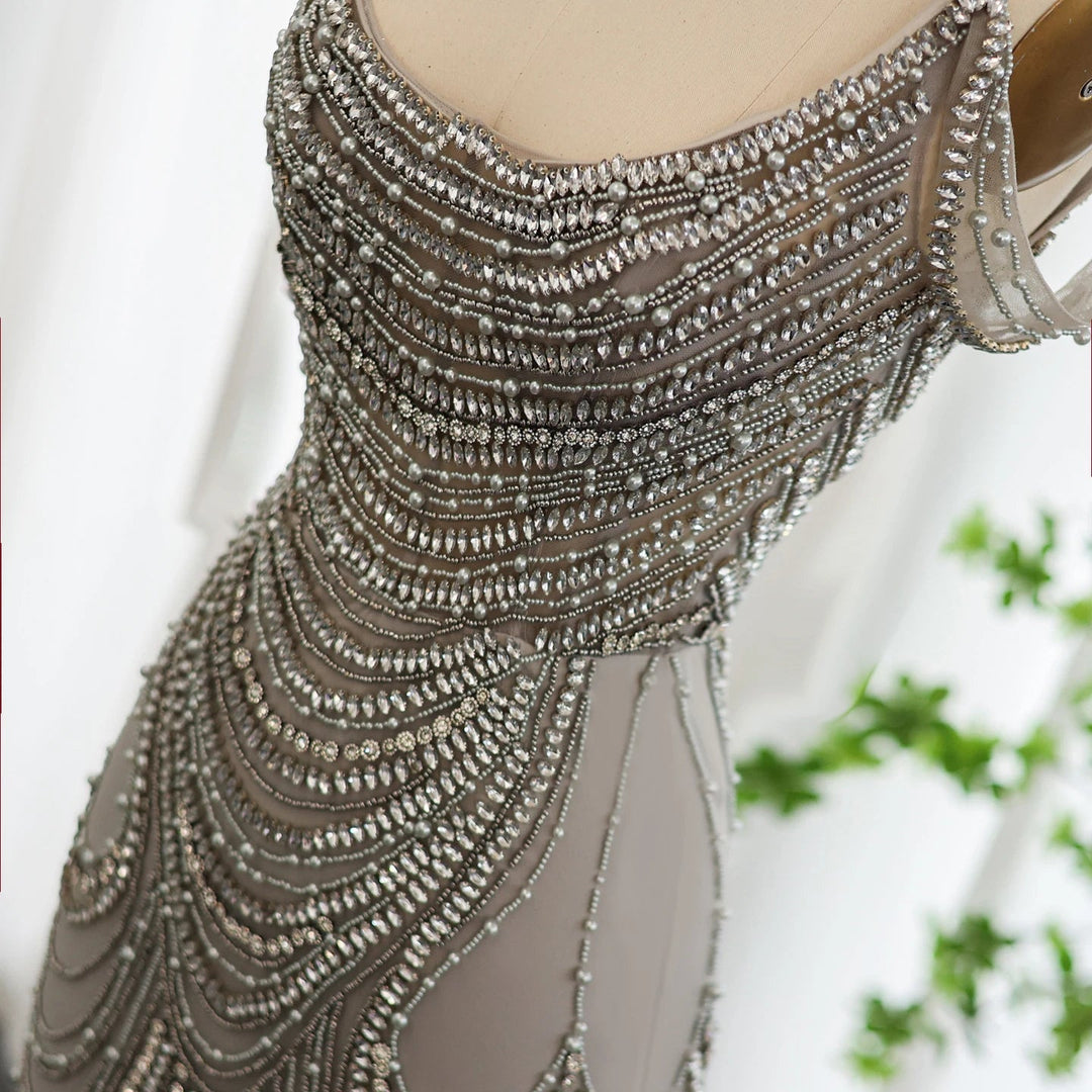 Luxury Crystal Silver Gray Mermaid Dubai Evening Dresses SS403