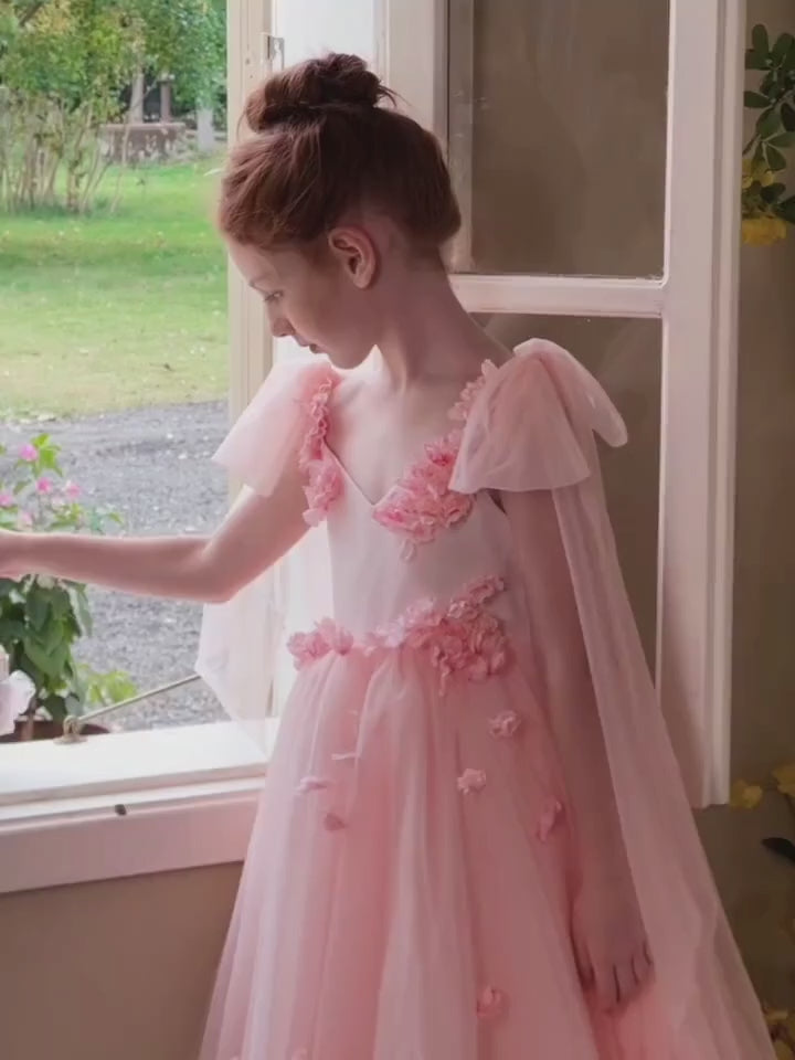 Elegant Blush Girl Dress Handmade Flower Birthday Gown J142