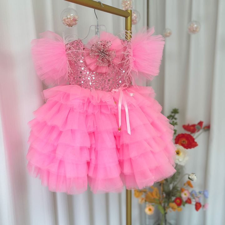 Floral Sequin Knee Length Baby Birthday Girl Dress J275