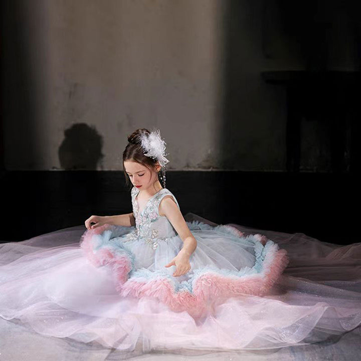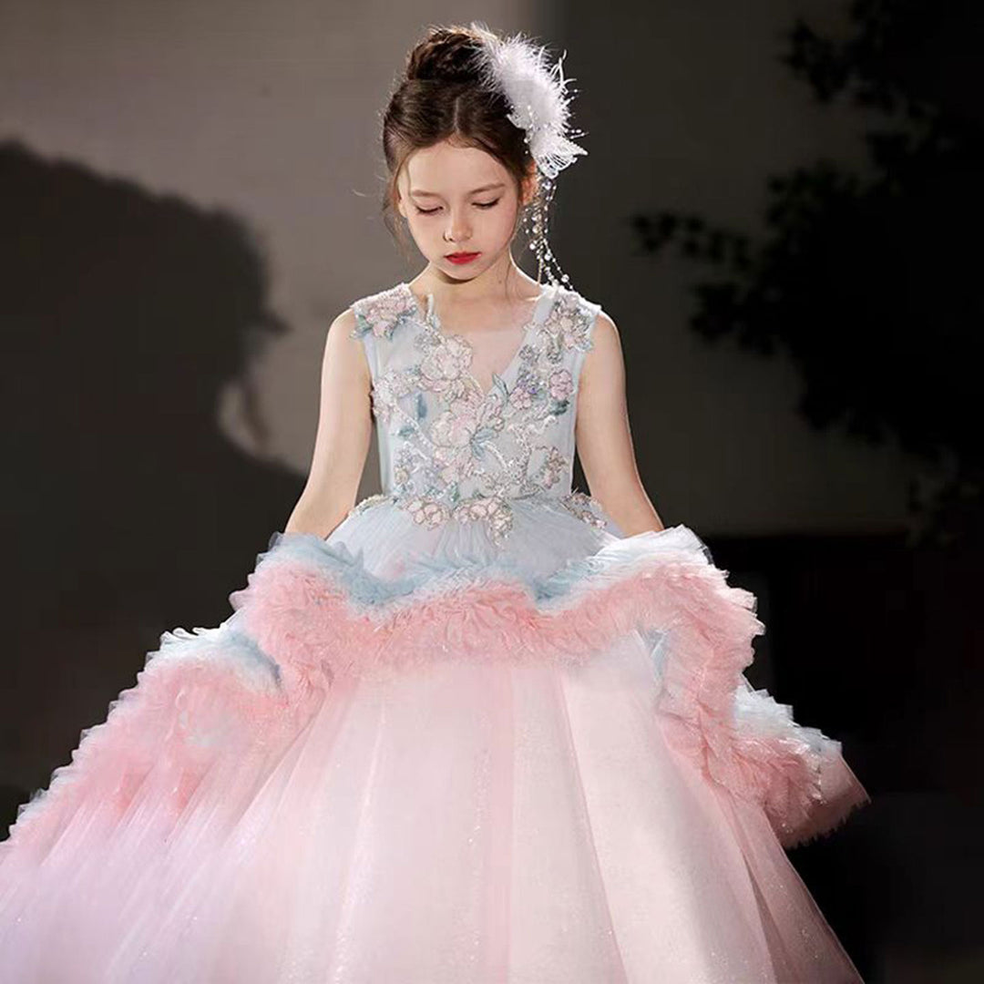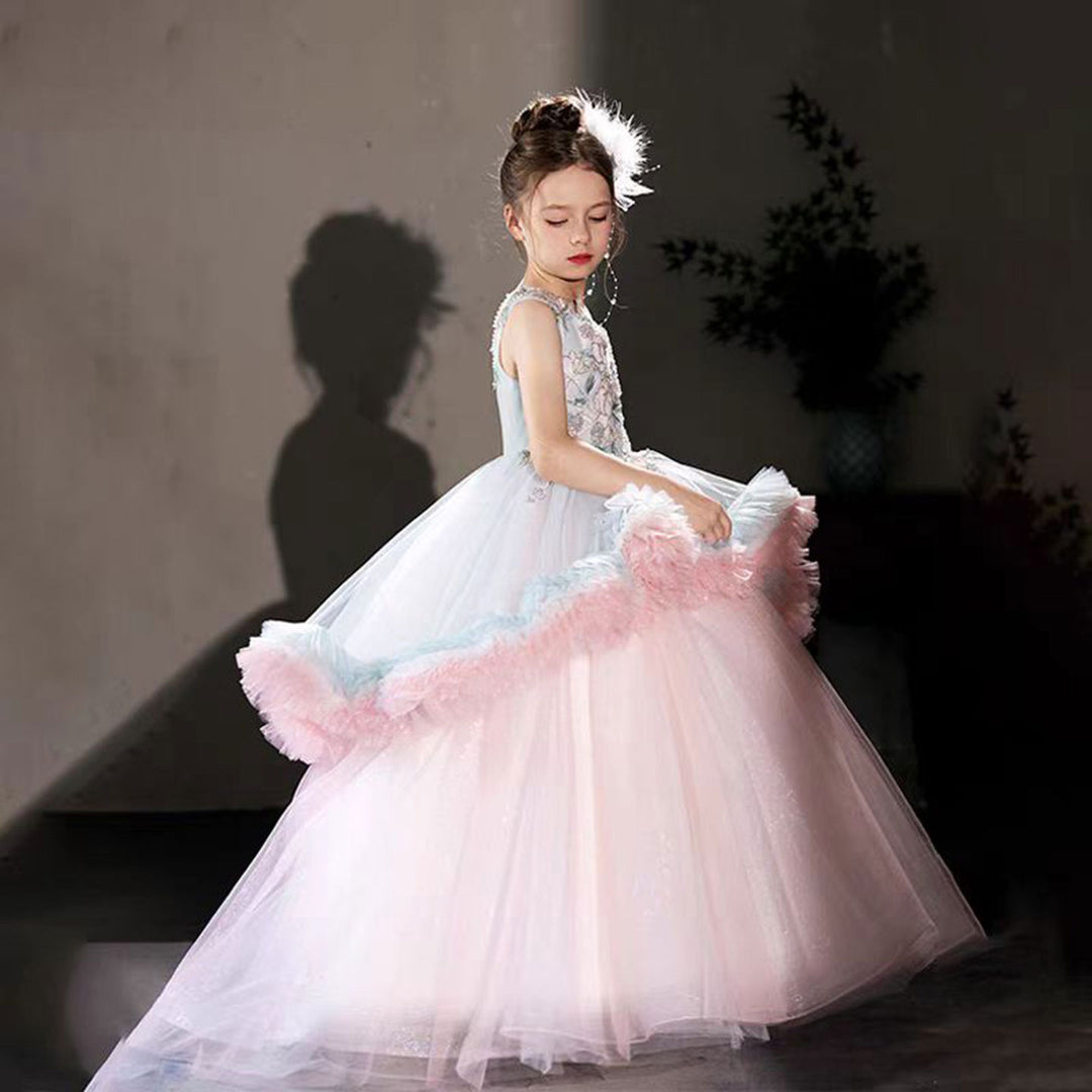 Luxury Embroidery Pink Arabic Bithday Party Girl Dress J120