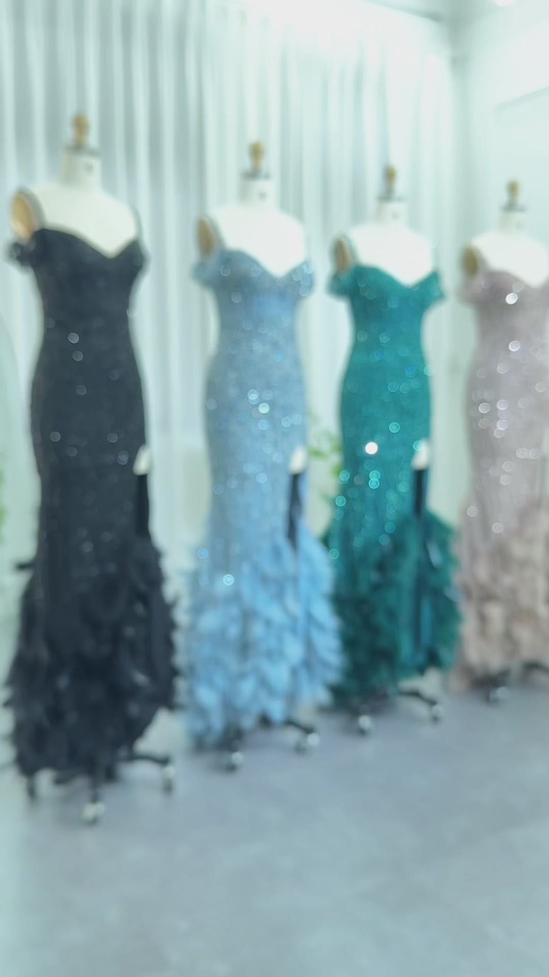 Pink Mermaid Feathers Prom Dresses Wedding Evening Dress SS169