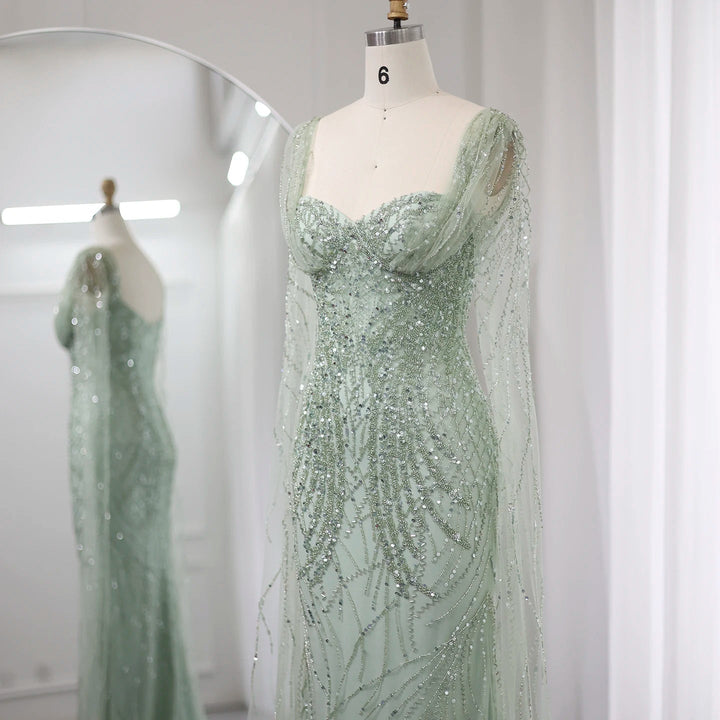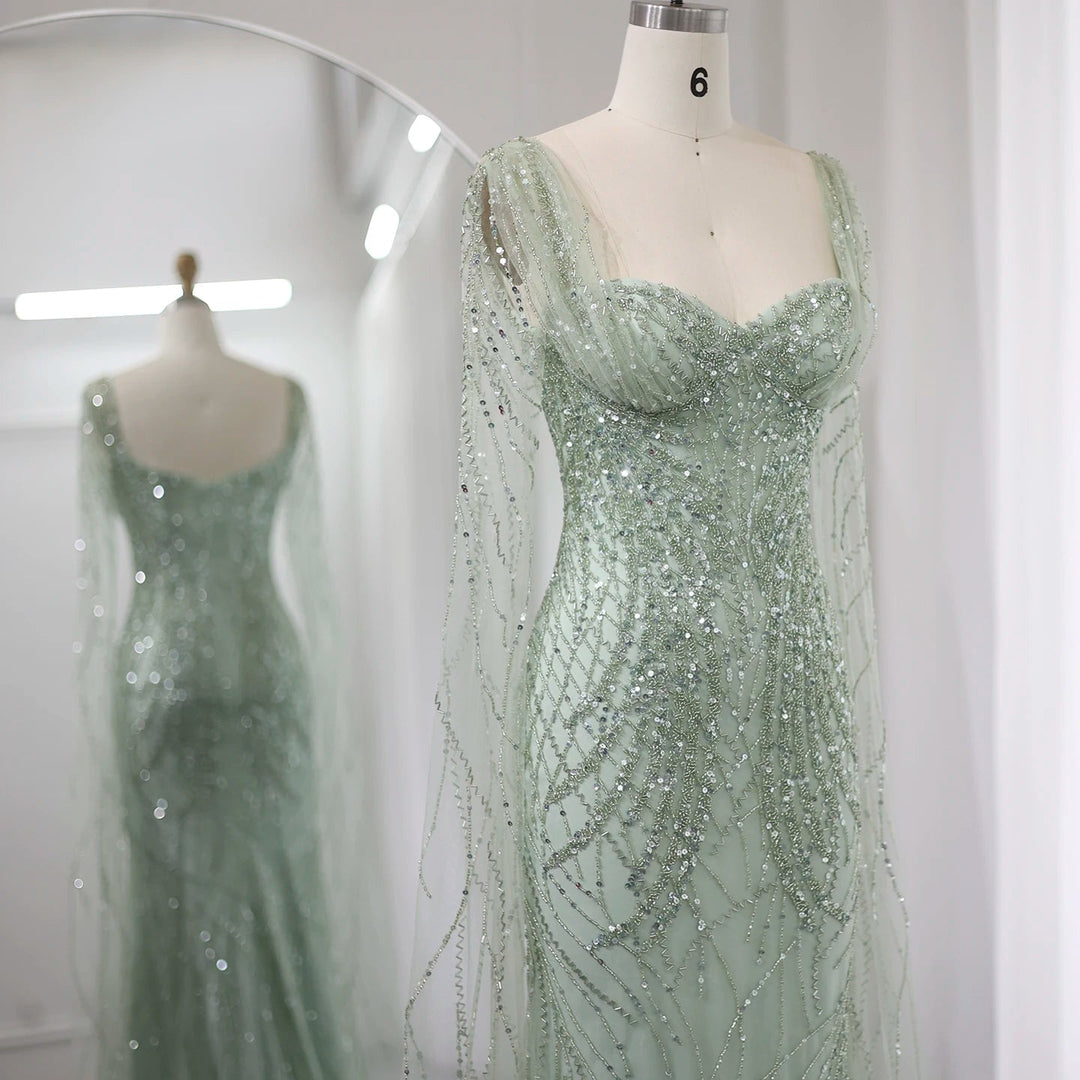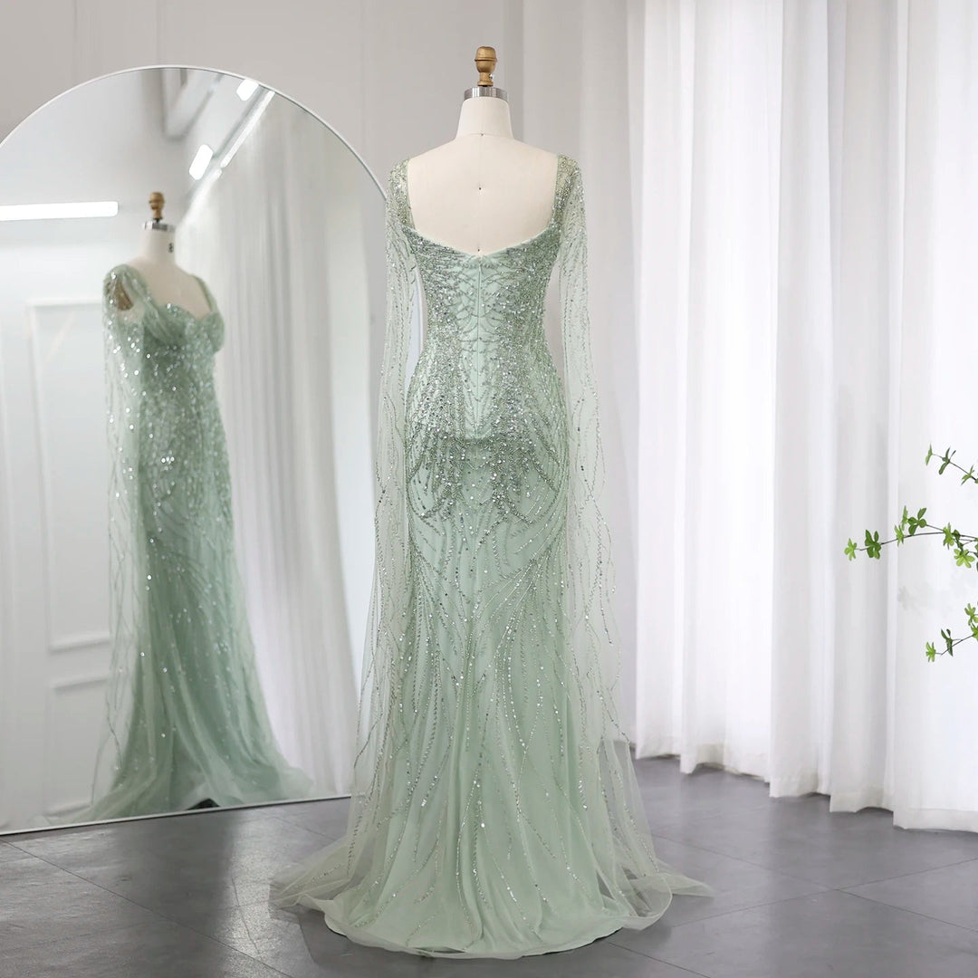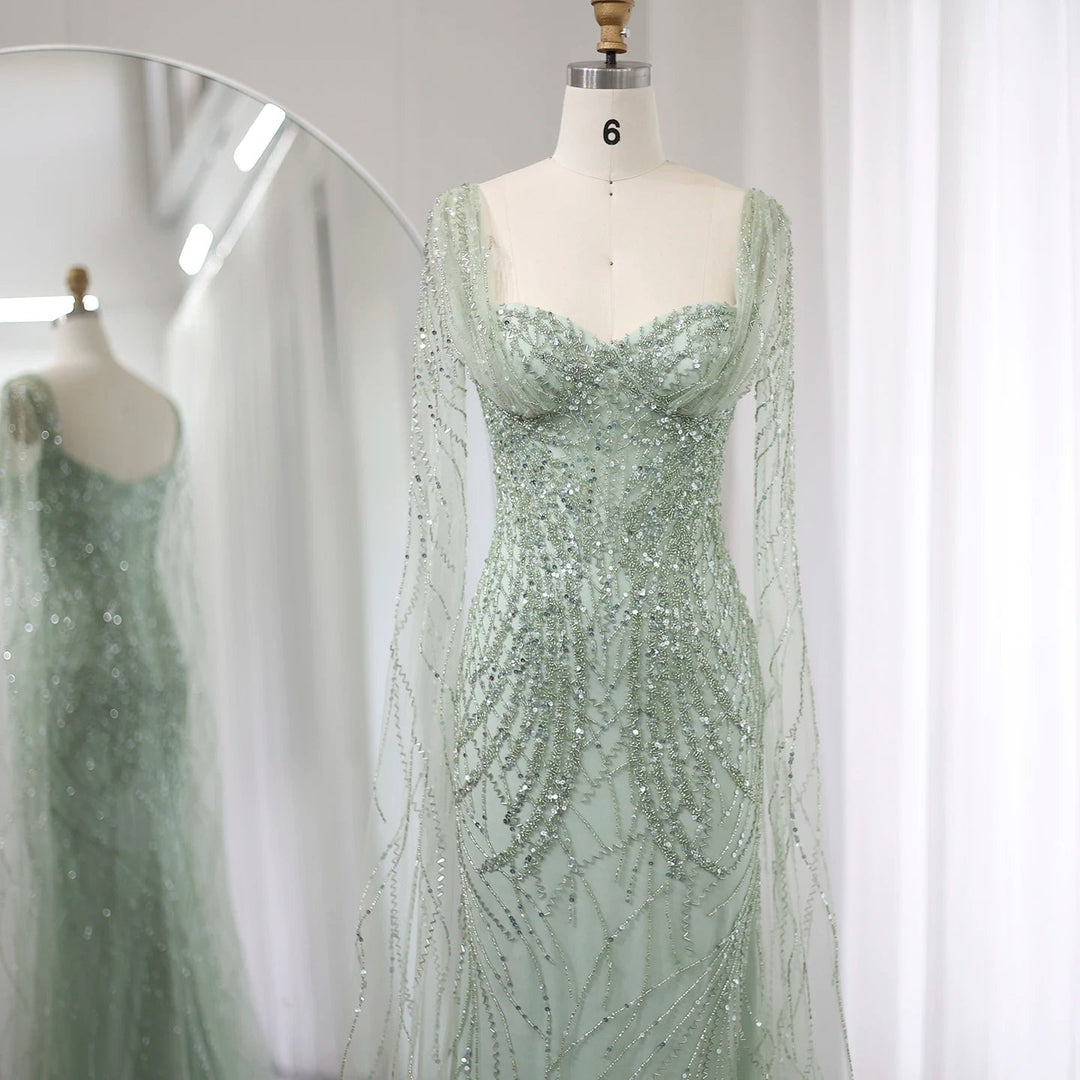 Indulge in luxurious elegance with the Dreamy Vow Lilac Mermaid dress. Featuring exquisite cape sleeves and elegant mermaid silhouette, this dress will make you feel like royalty. Perfect for formal events, weddings, and parties. Handcrafted with precision and attention to detail, this dress is truly a showstopper.