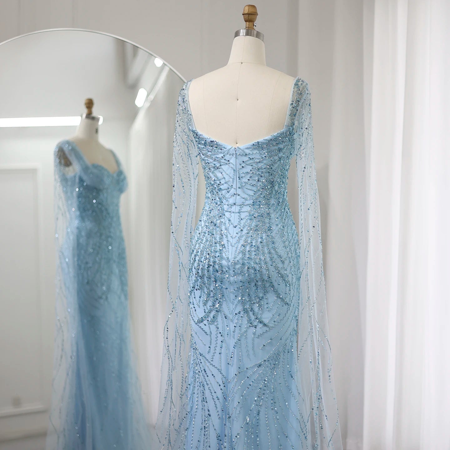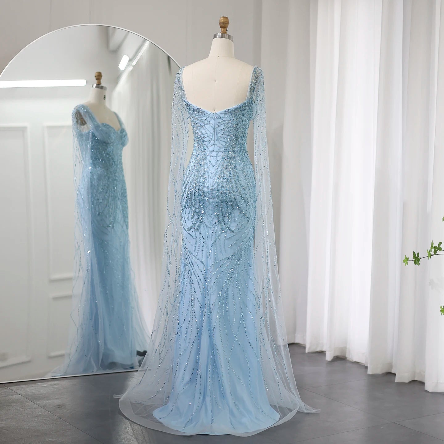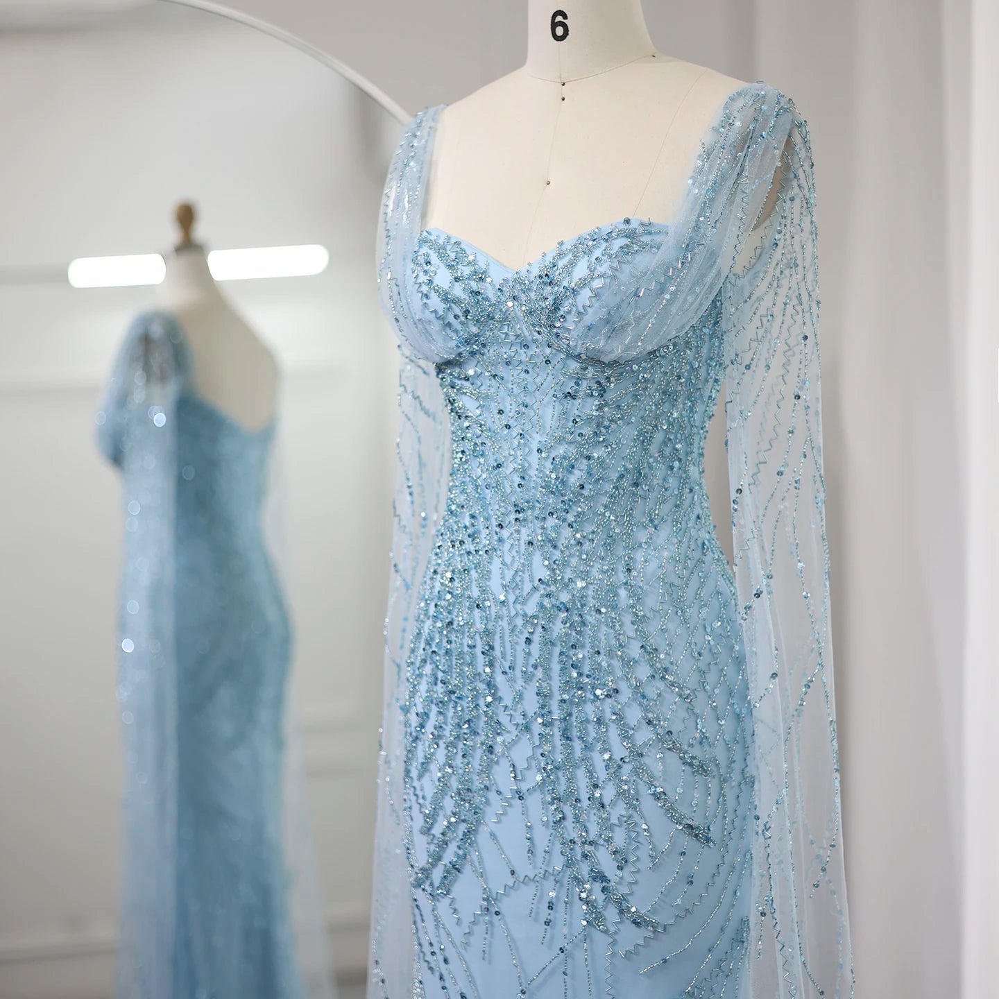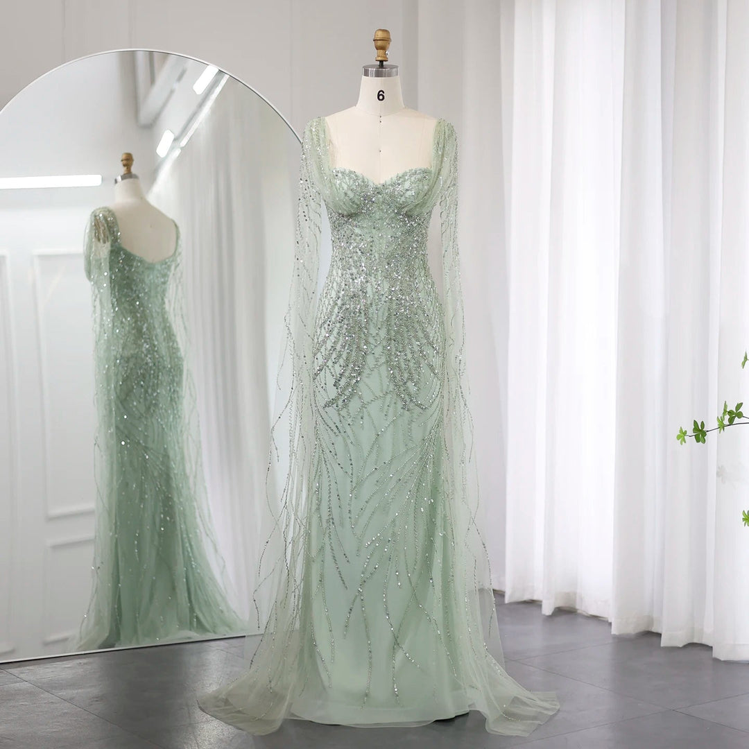 Indulge in luxurious elegance with the Dreamy Vow Lilac Mermaid dress. Featuring exquisite cape sleeves and elegant mermaid silhouette, this dress will make you feel like royalty. Perfect for formal events, weddings, and parties. Handcrafted with precision and attention to detail, this dress is truly a showstopper.