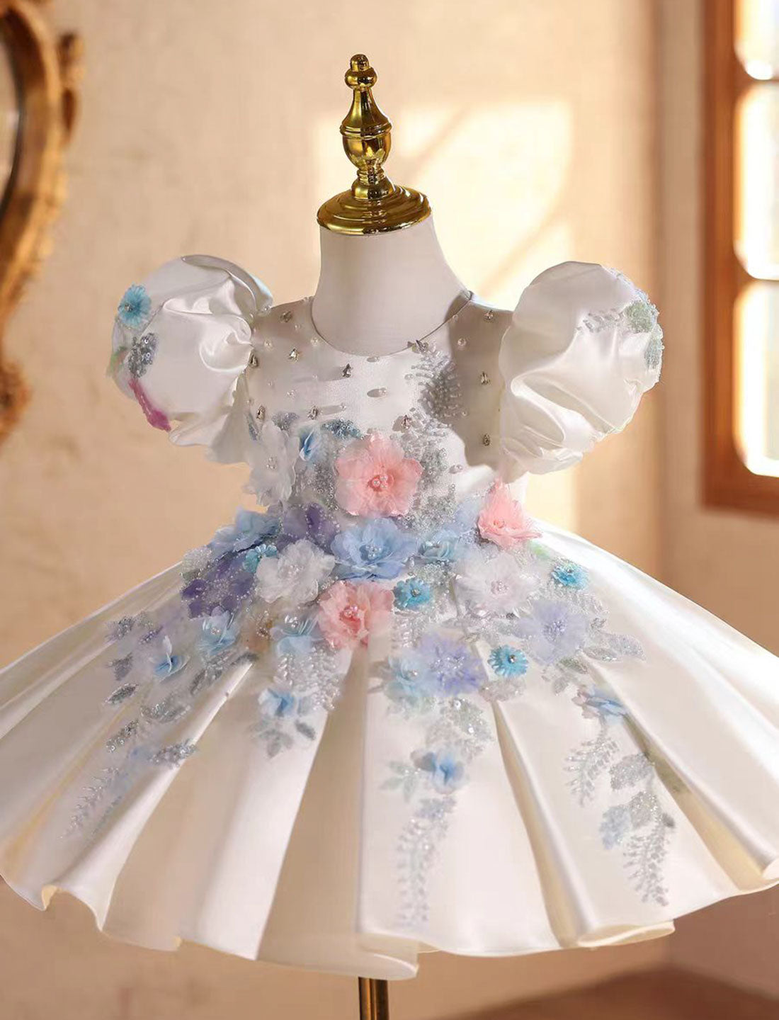 Elegant White Beaded Flower Girl Dress Princess Birthday Gown  J841