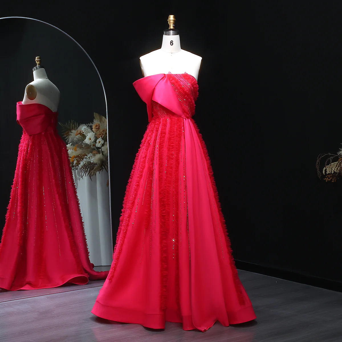 Luxury Fuchsia Textured Beaded Strapless Ball Gown with Train XD042