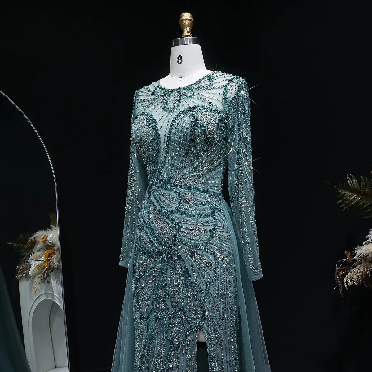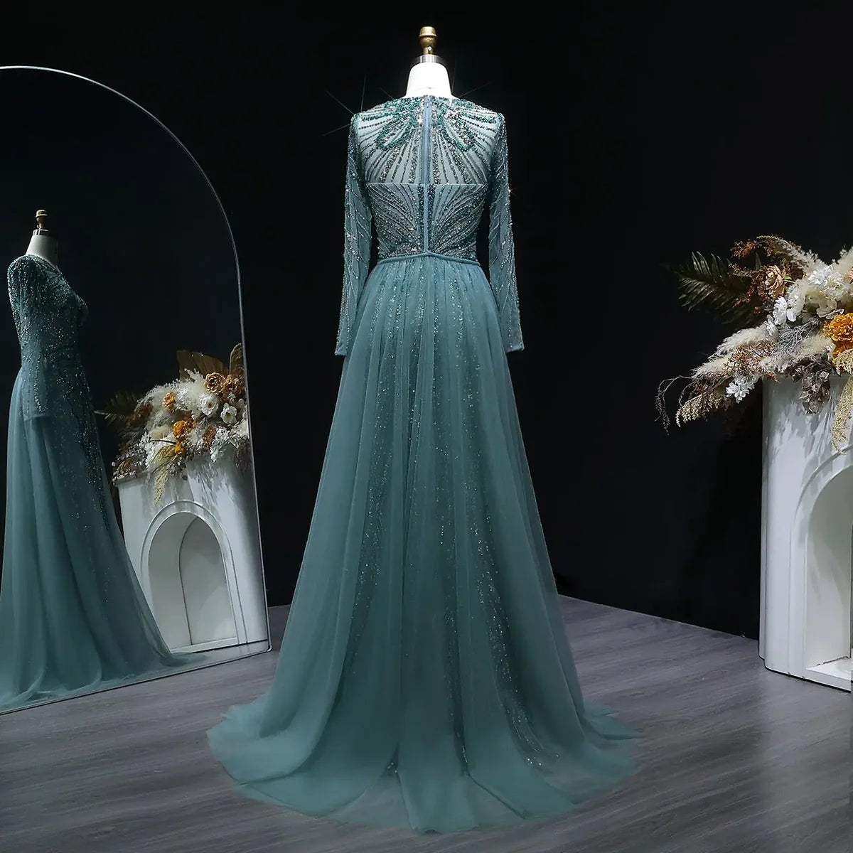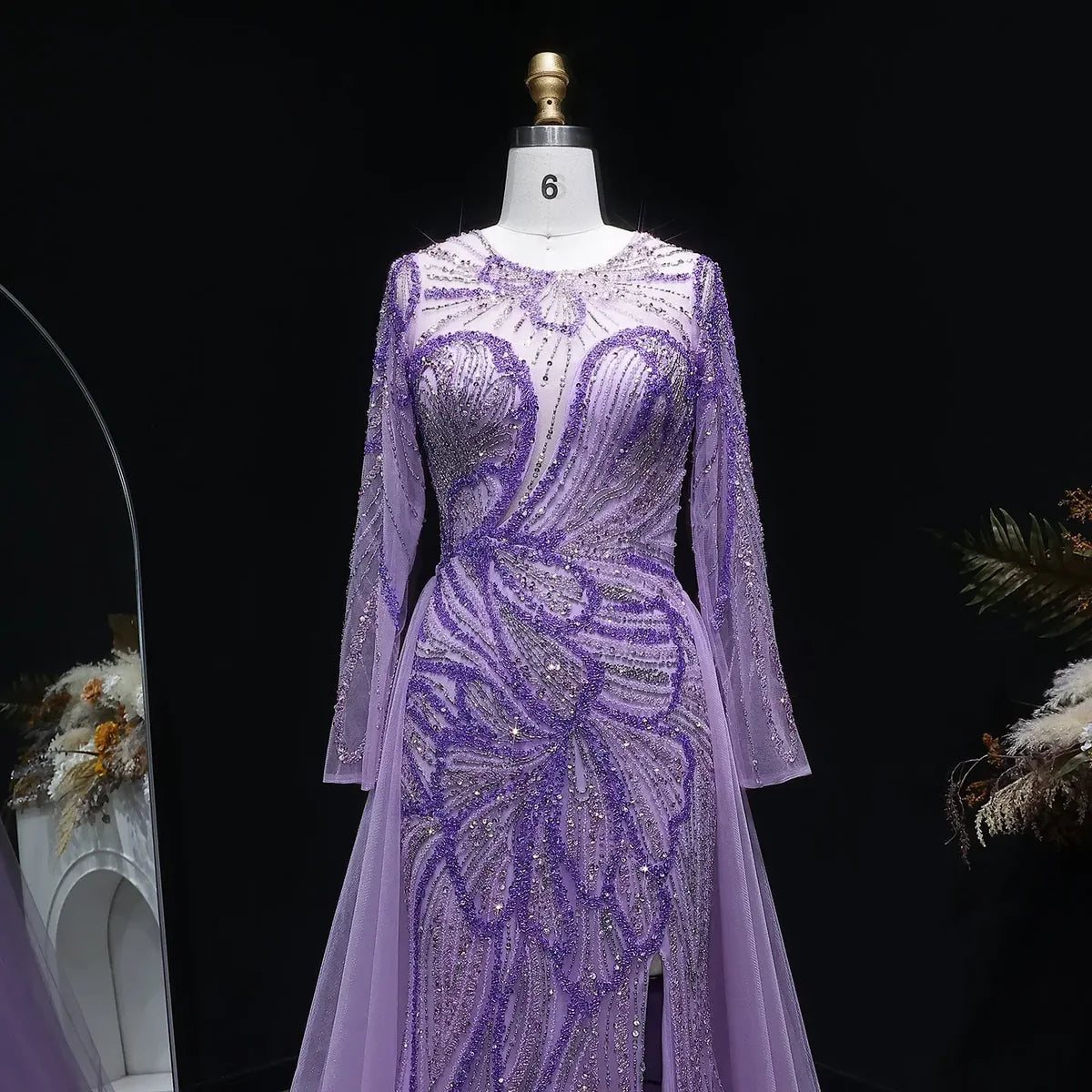 Luxury Wine Red Crystal Embellished Slit Evening Dress with Overskirt SS160