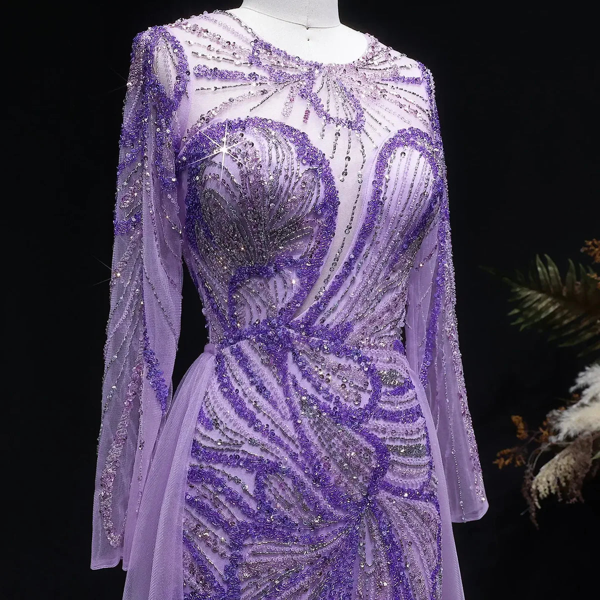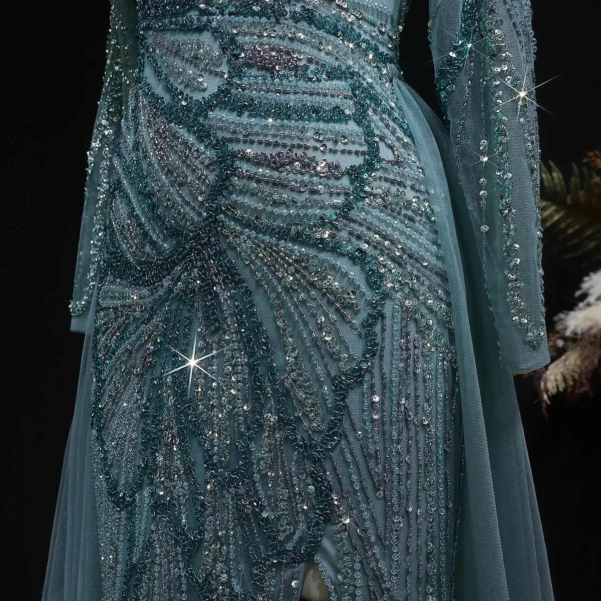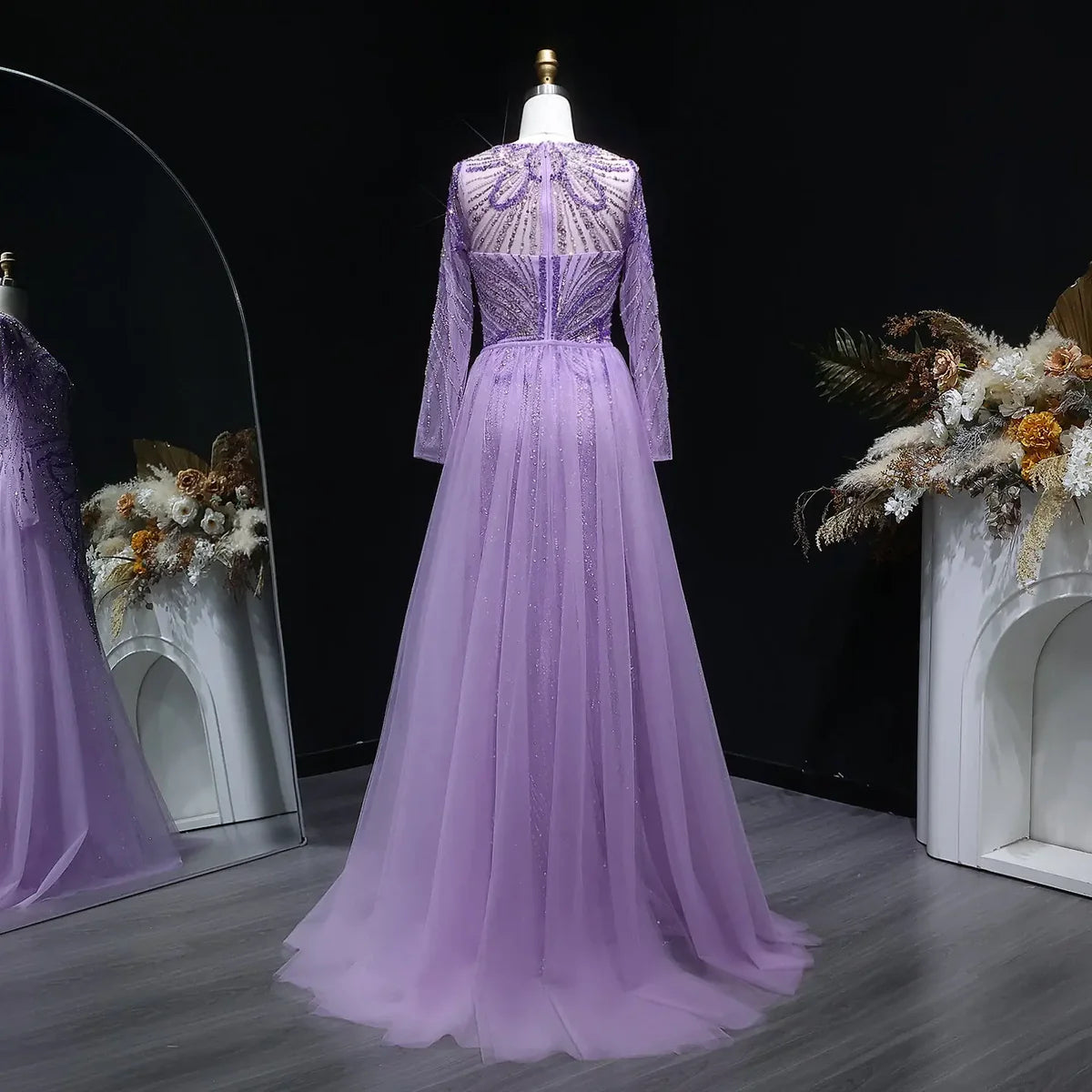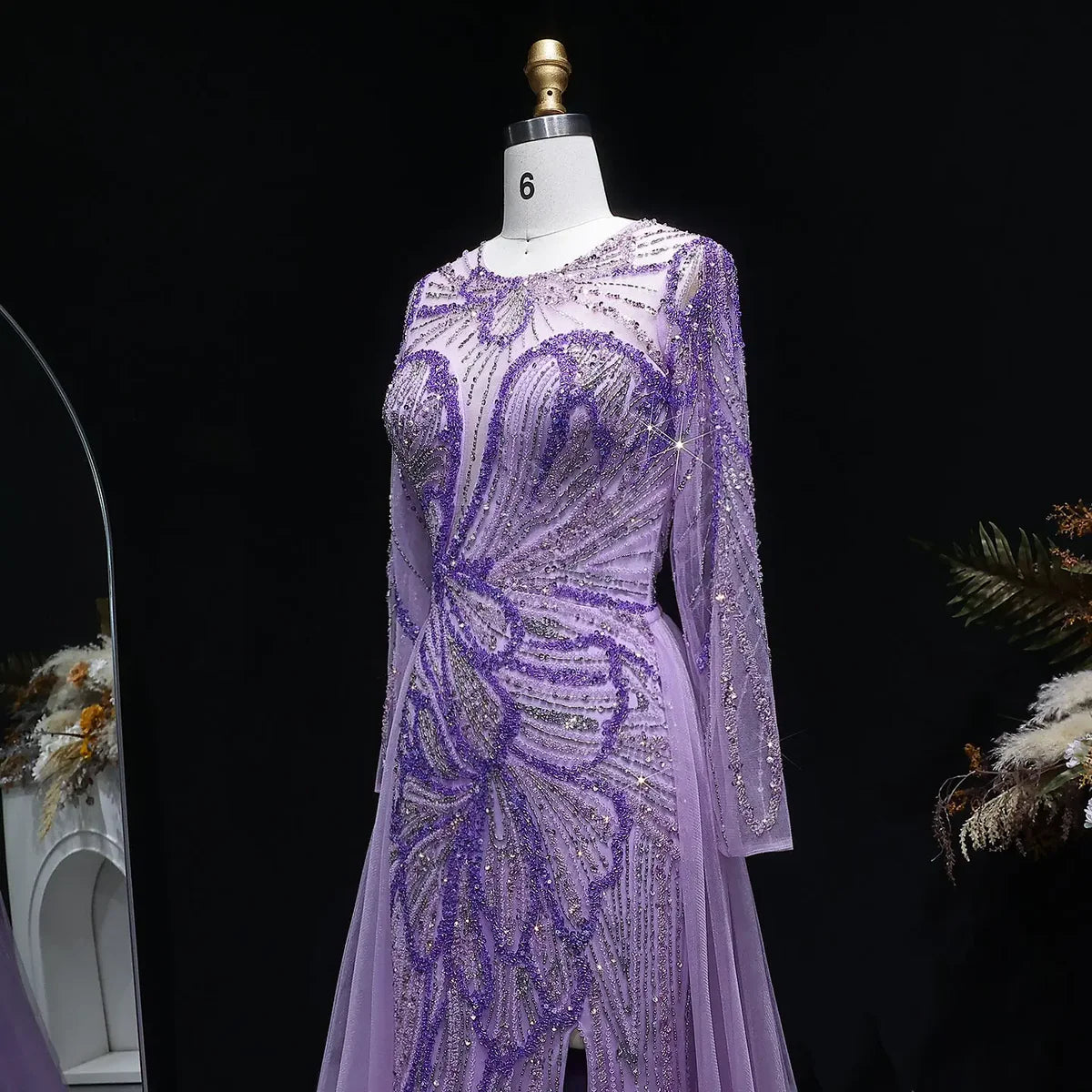 Luxury Wine Red Crystal Embellished Slit Evening Dress with Overskirt SS160
